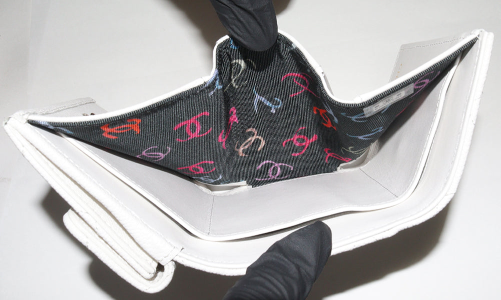 Item name : Chanel Trifold Wallet Classic Small Flap Grained Shiny Calfskin White Gold AP0230