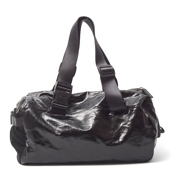 Item name : Chanel Coated Canvas Boston Bag Travel Sports Black