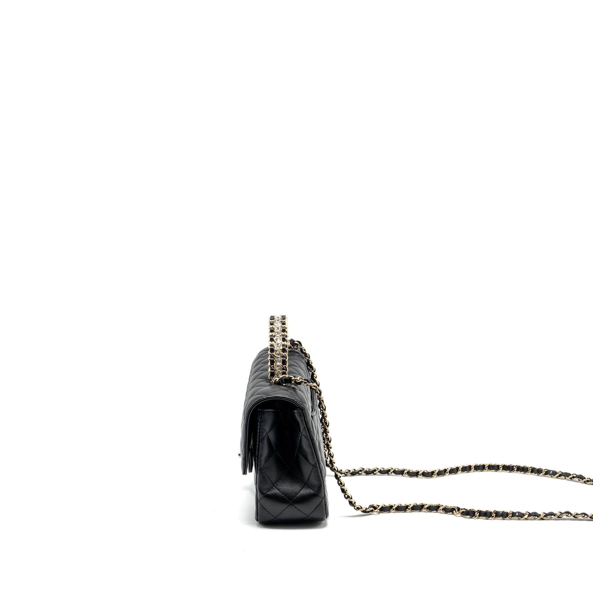 Chanel Crystal Detailed Top Handle Flap Bag Lambskin Black GHW (Microchip)