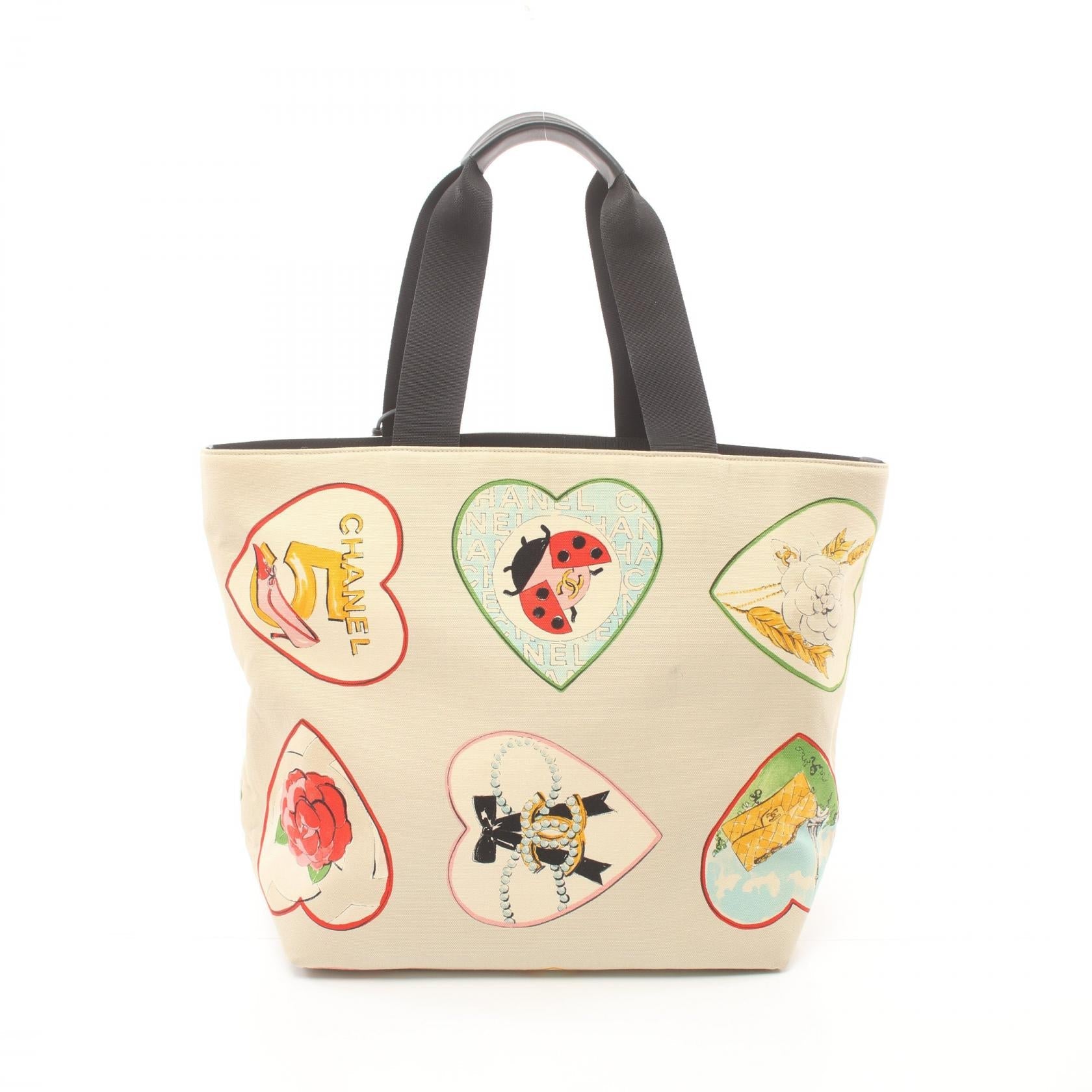 Chanel Heart Print Valentine Linen Tote Bag Canvas Tote Bag A21385 in New Condition