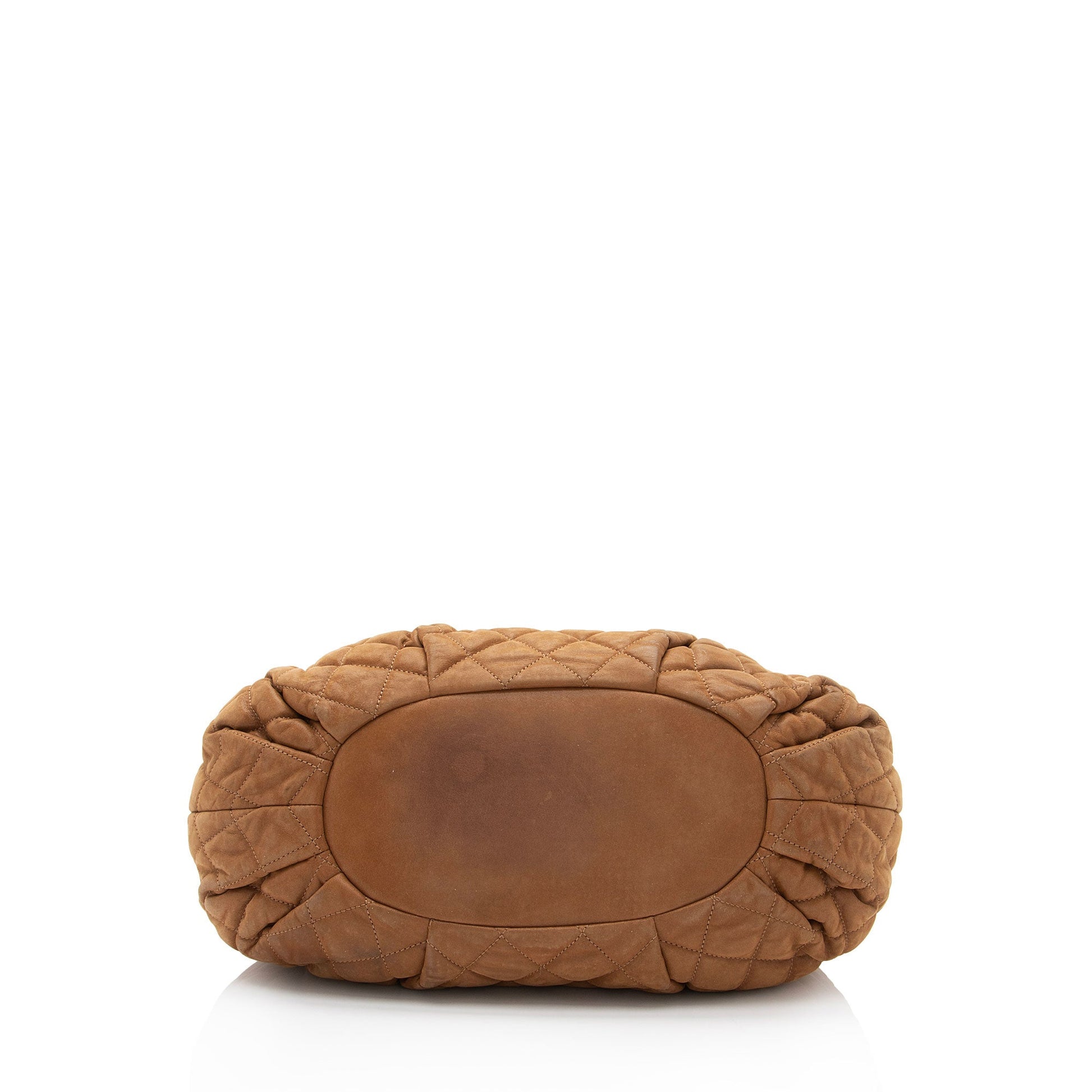Condition Notes: Darkening, marks, and creasing throughout exterior. Visible marks to exterior base. Light creasing and wear to handles. Light surface scratches to hardware. Minor wear throughout interior.