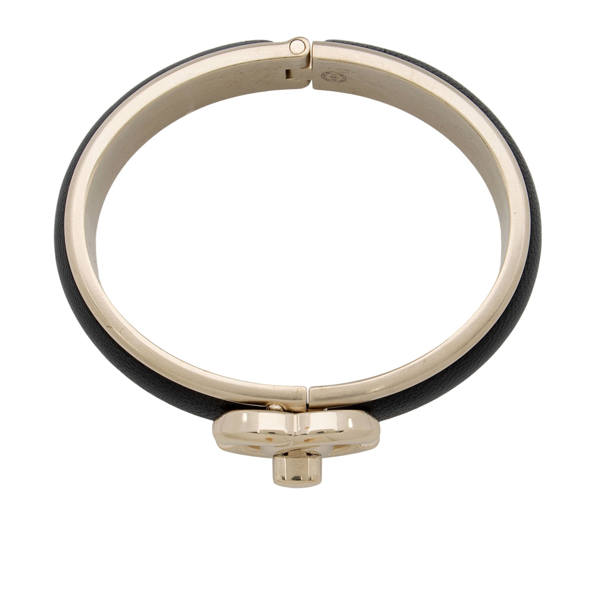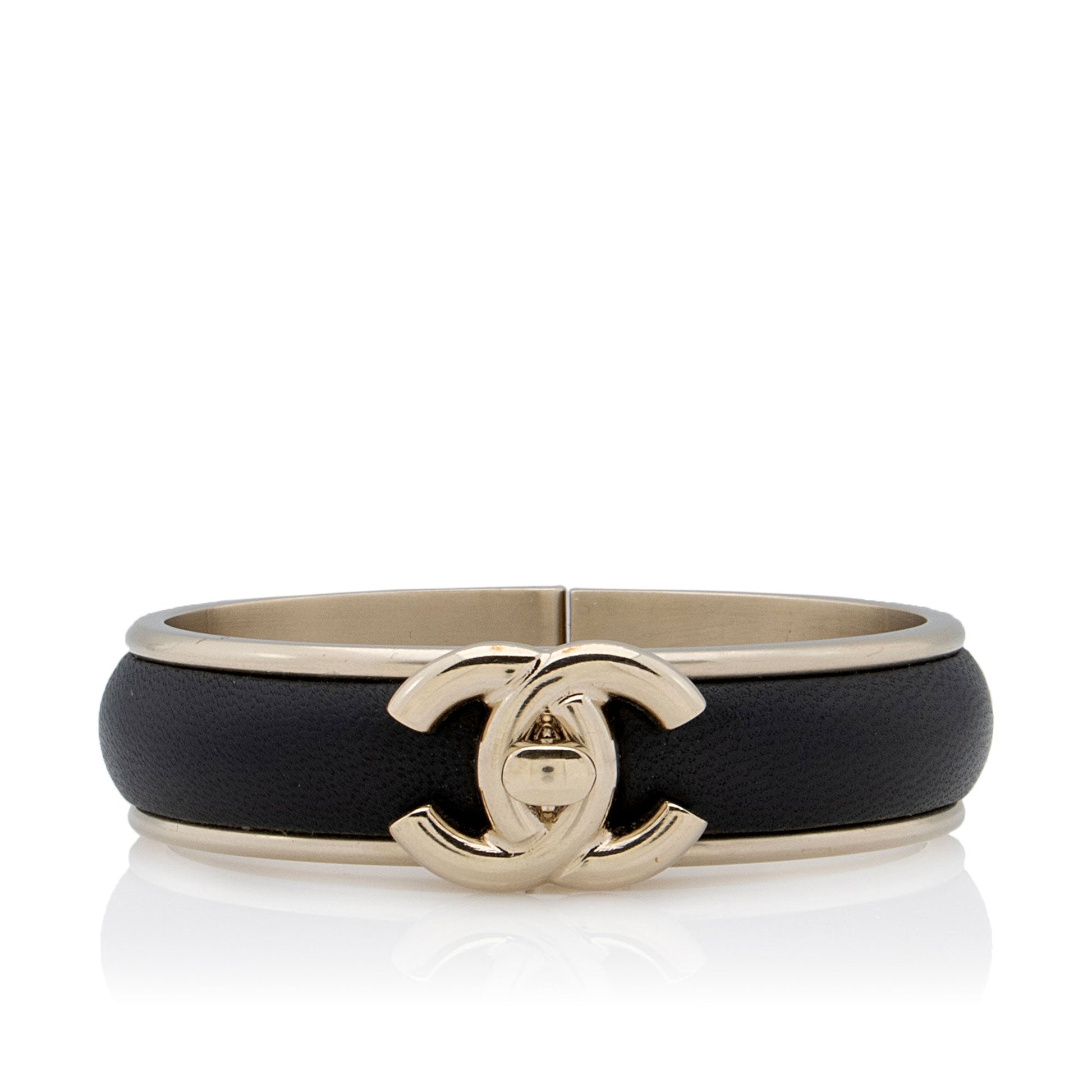 Chanel Leather CC Turnlock Narrow Cuff Bracelet (SHF-yDVGhV)