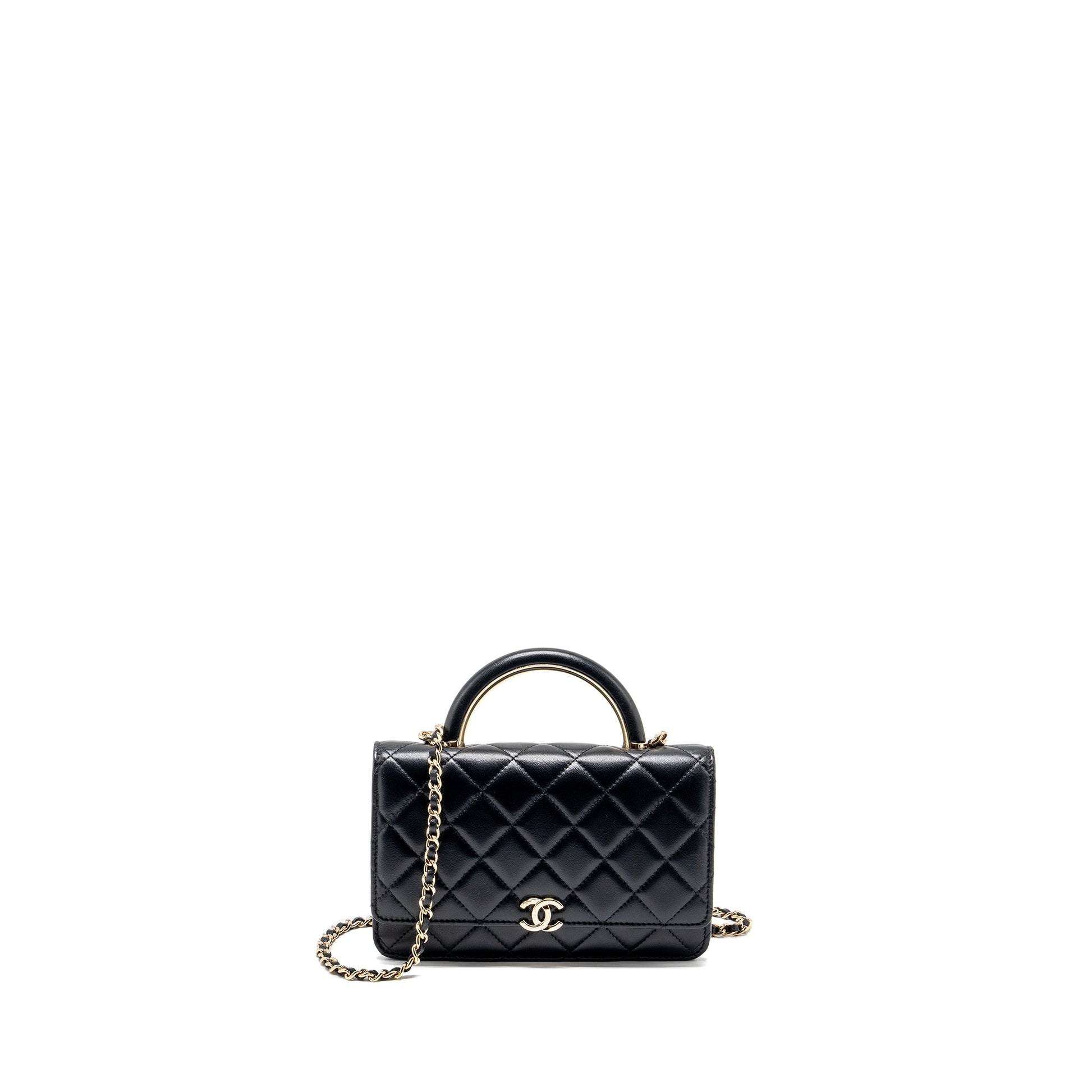 CHANEL leather top handle wallet on chain lambskin black LGHW (microchip)