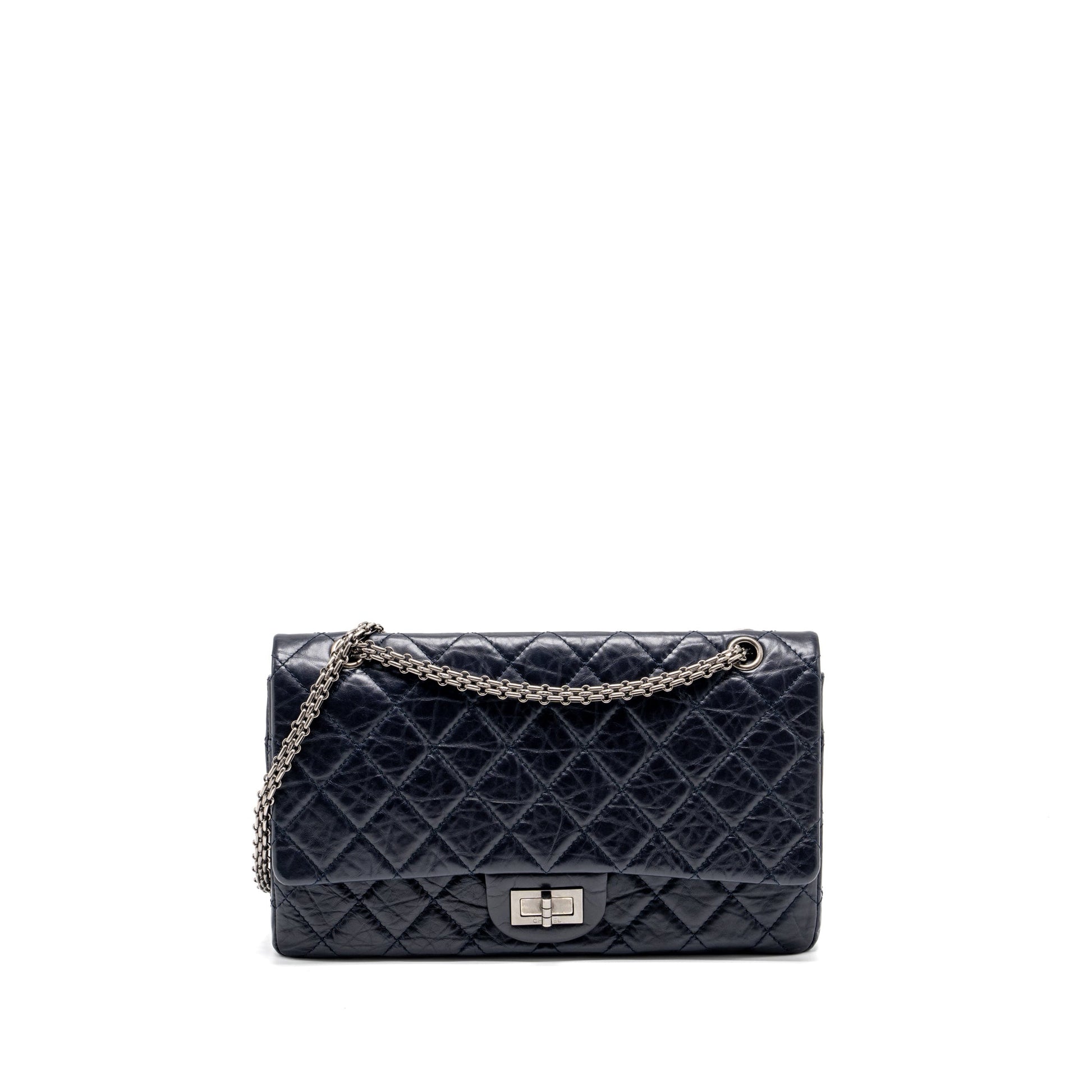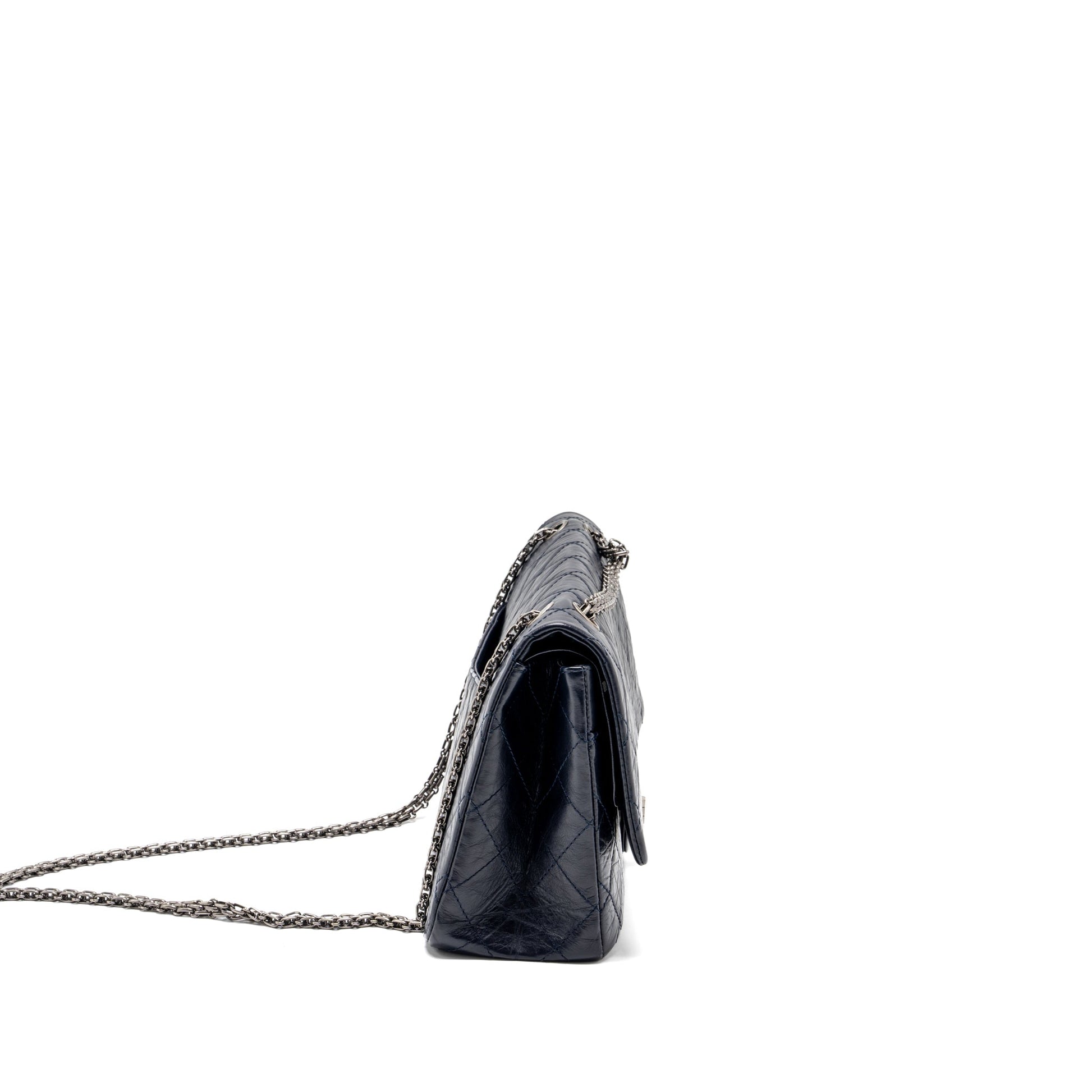 Chanel Maxi 2.55 Reissue flap bag aged calfskin dark blue ruthenium hardware