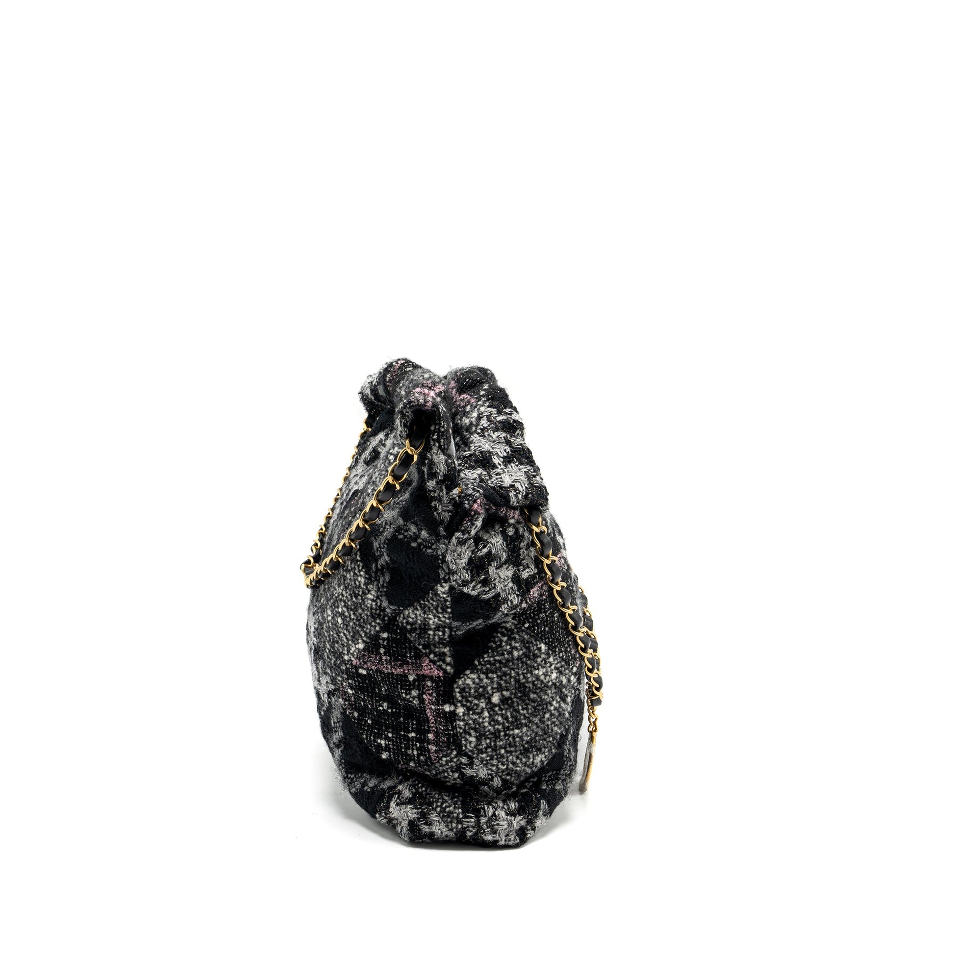 Chanel Medium 22 Bag fabric / tweed multicolour GHW (microchip)
