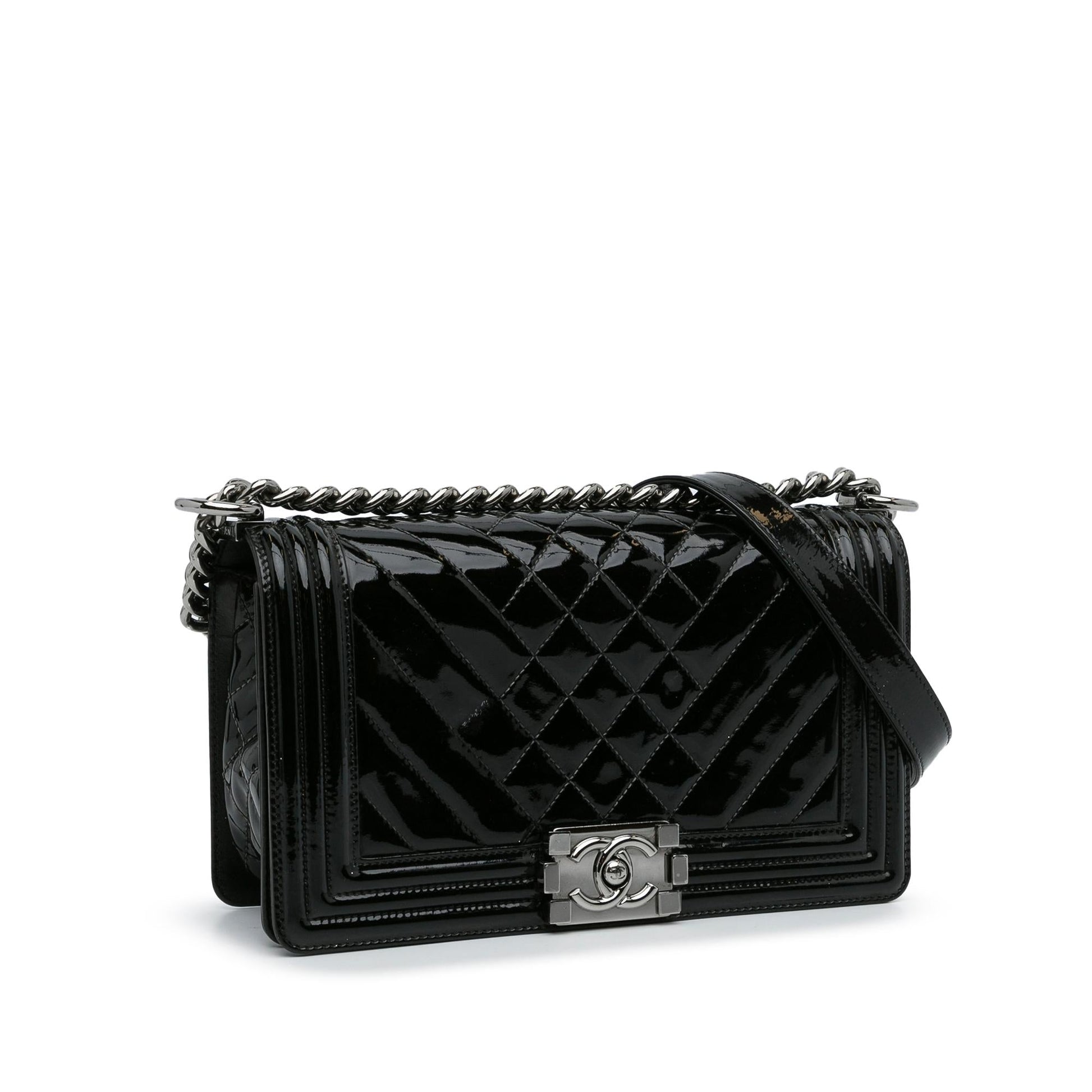 Chanel Medium Patent Chevron Boy Flap (SHG-vpSXfu)