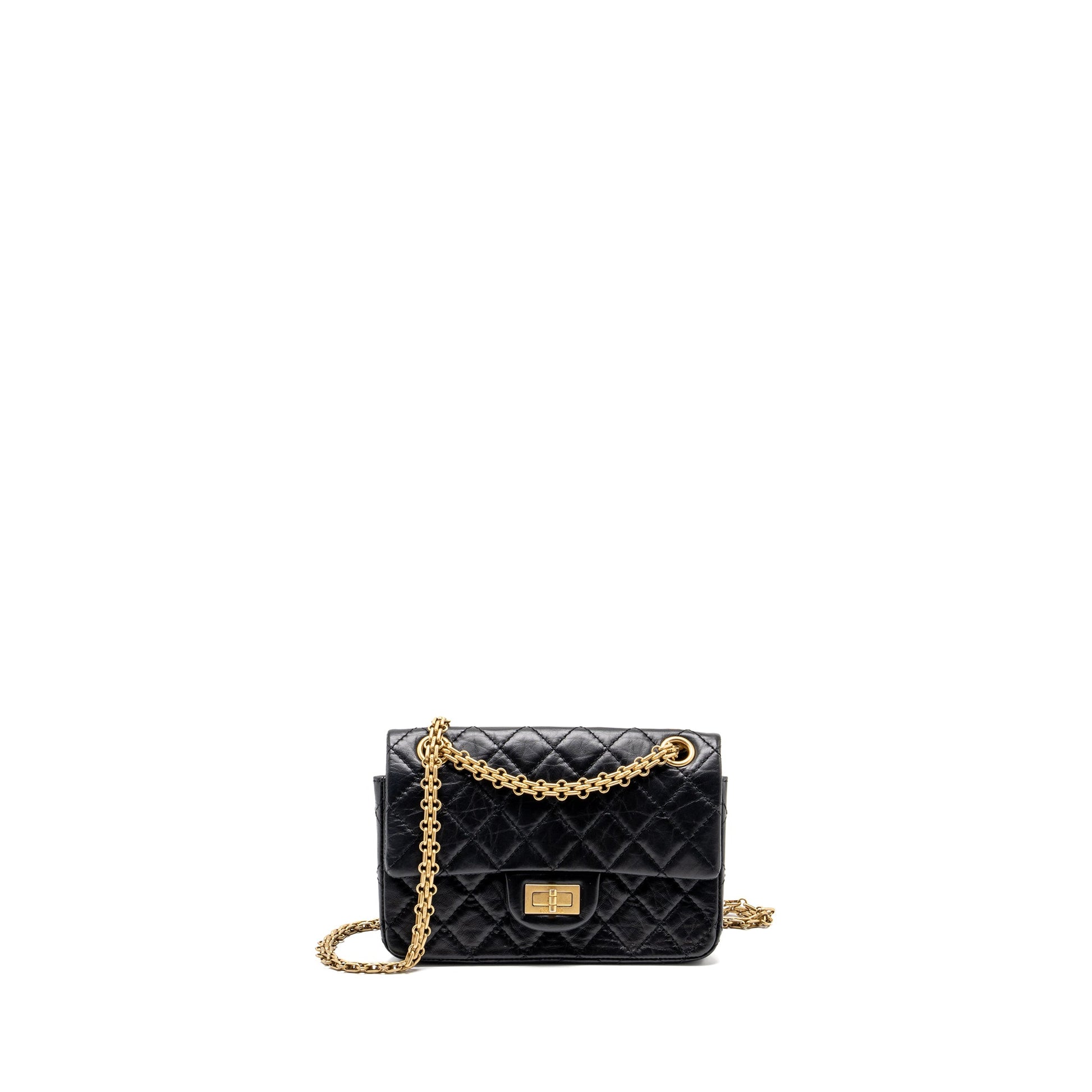 Chanel mini 2.55 reissue flap bag aged calfskin black GHW