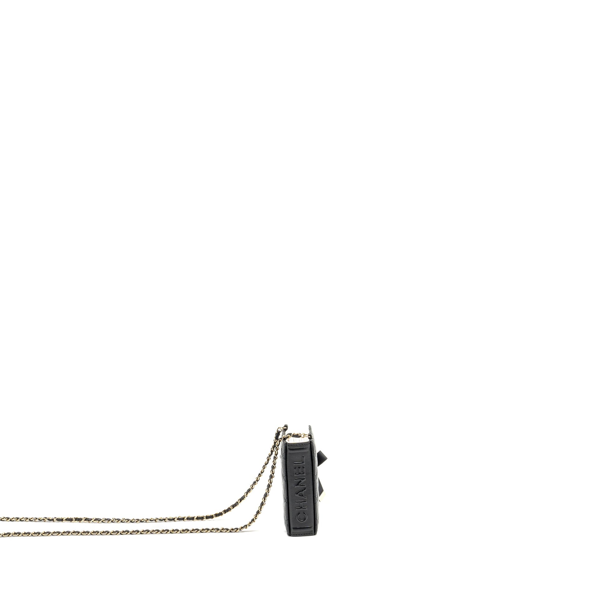 Chanel mini Book Card Holder with Chain Lambskin Black LGHW (microchip)