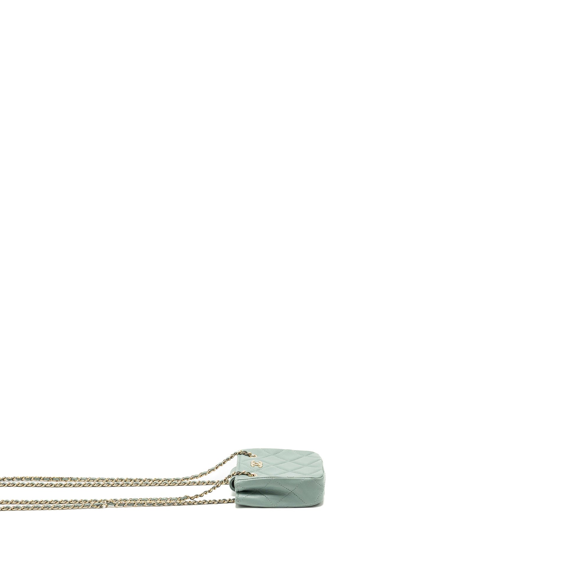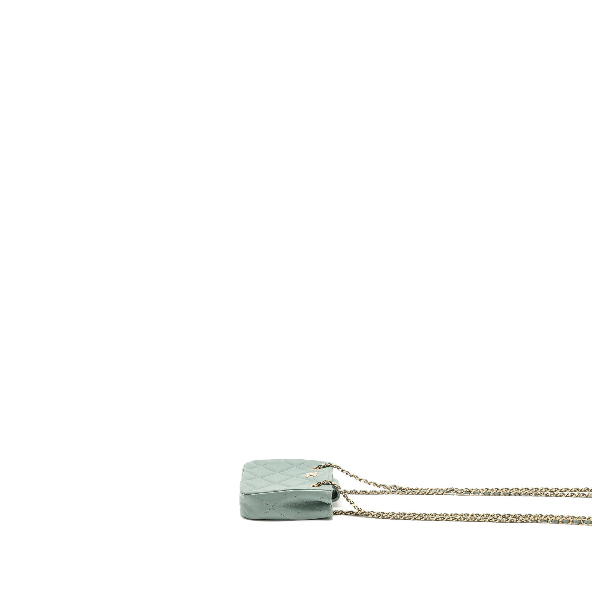 Chanel mini quilted chain bag lambskin light blue LGHW