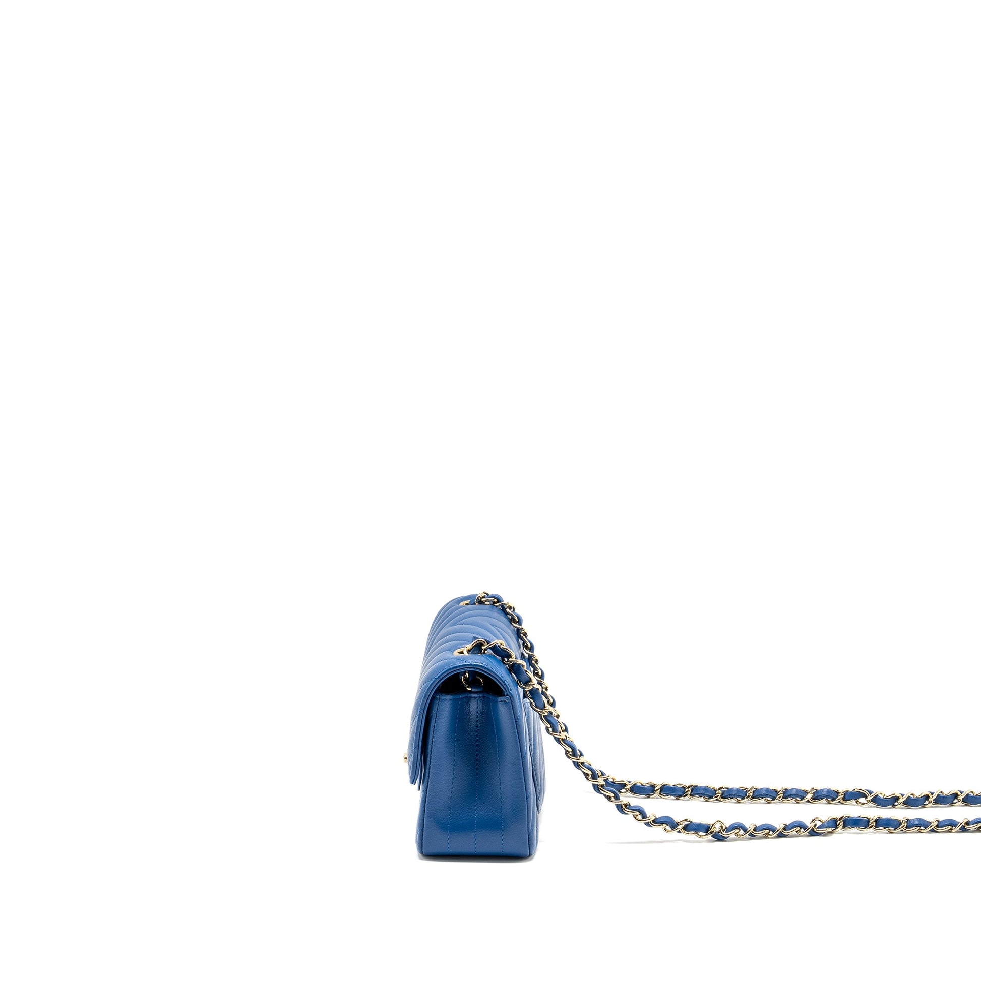 Chanel Mini Rectangular Flap Bag Chevron Lambskin Blue LGHW
