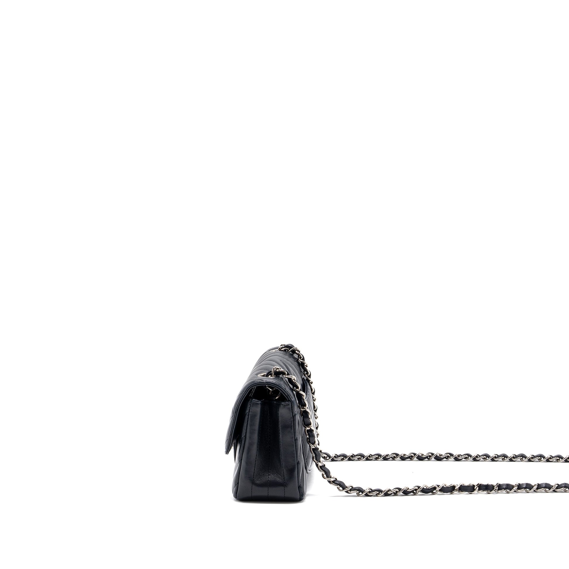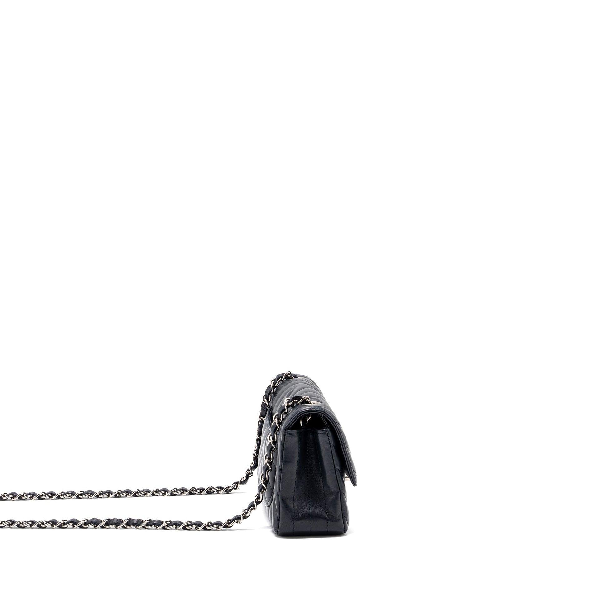 Chanel mini rectangular flap bag chevron lambskin navy SHW
