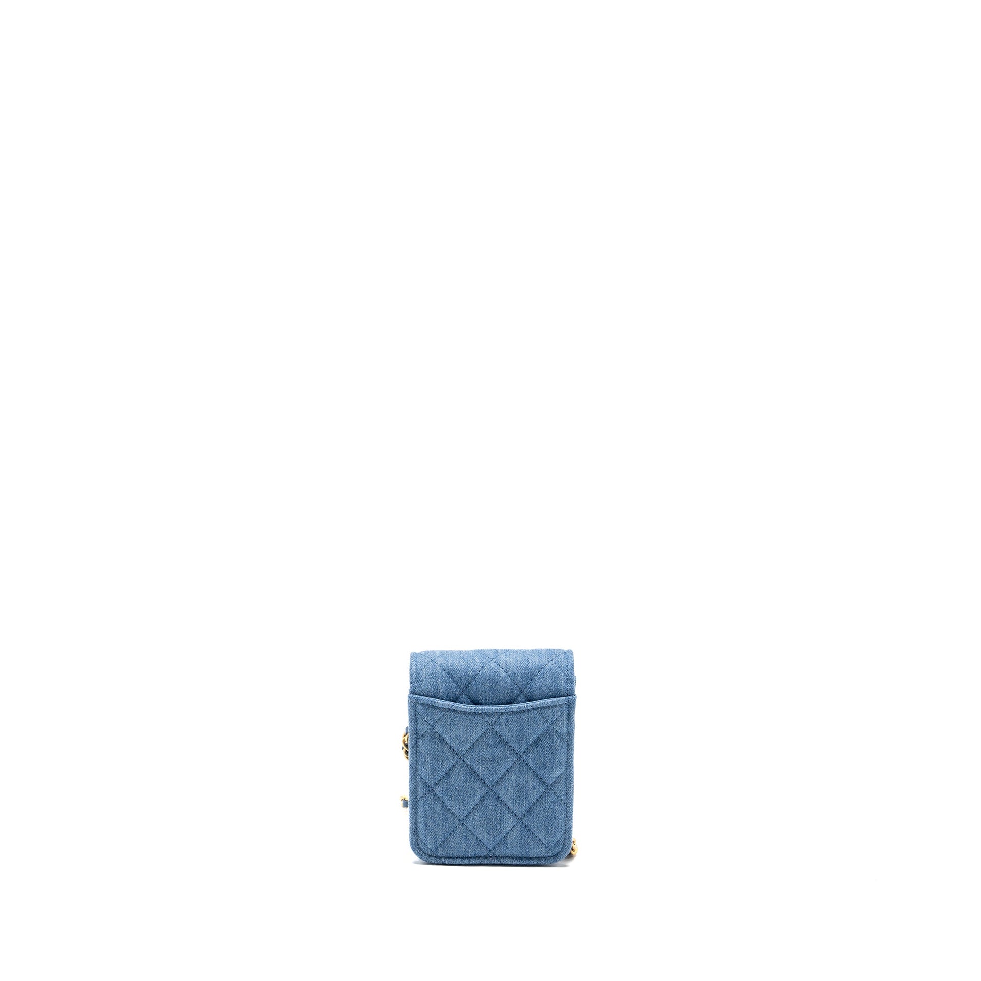 CHANEL Mini Vertical Flap Clutch With Chain Denim Blue GHW (microchip)
