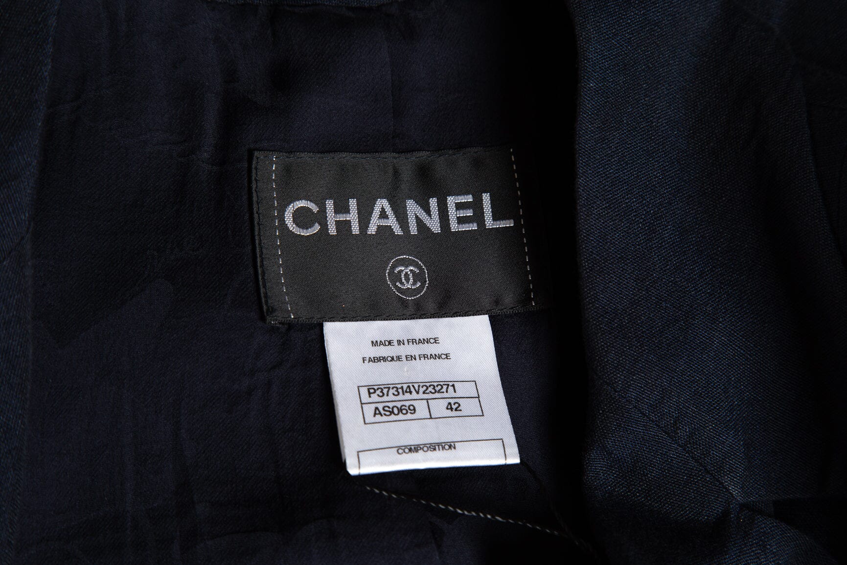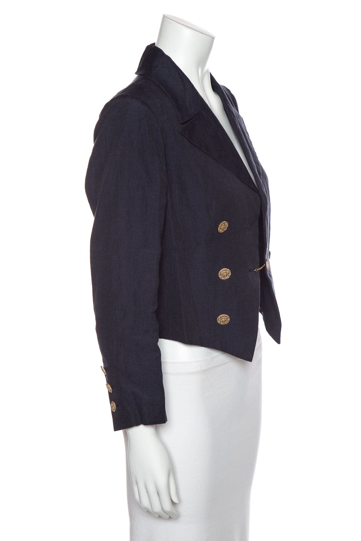 Chanel Navy Linen Cropped Jacket with Double Breast Gold Buttons. This item is in very good condition.