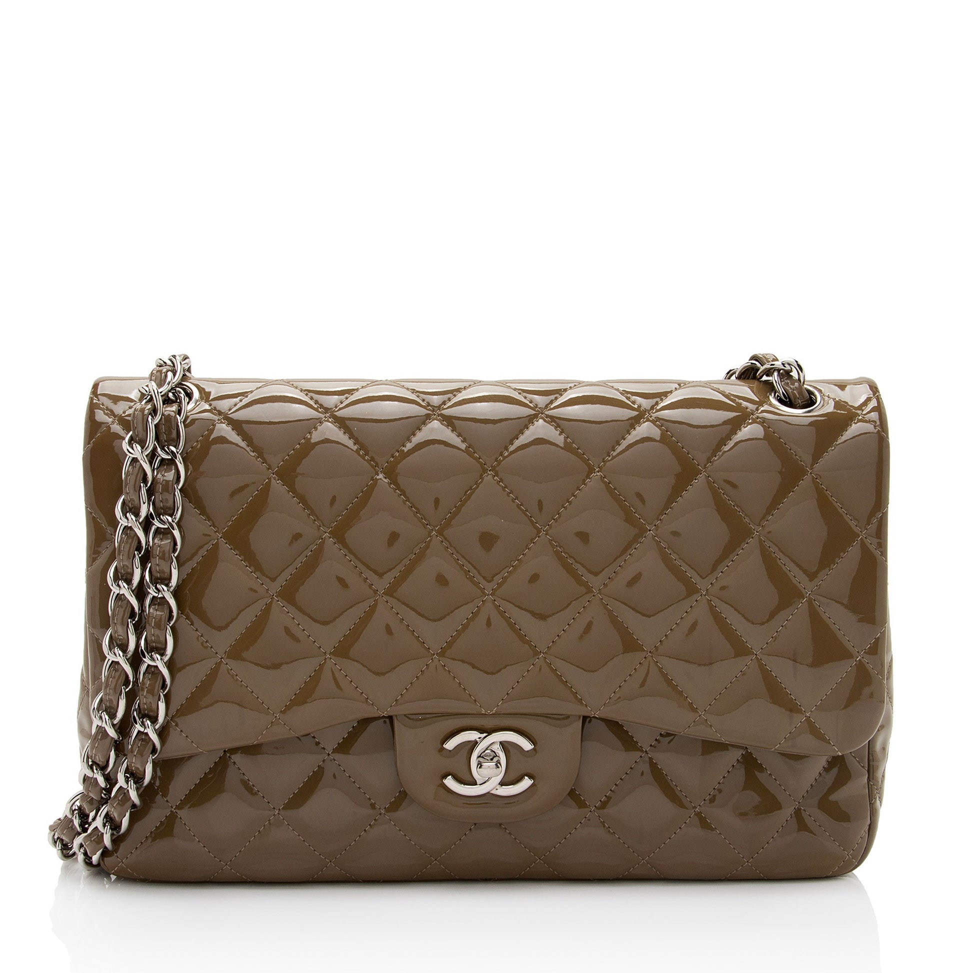 Chanel Patent Leather Classic Jumbo Double Flap Bag (SHF-jE6UCt)