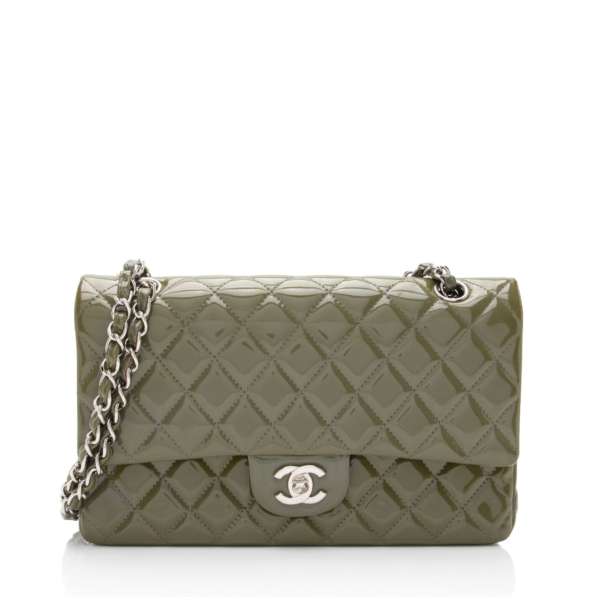 Chanel Patent Leather Classic Medium Double Flap Bag (SHF-yY0DZr)