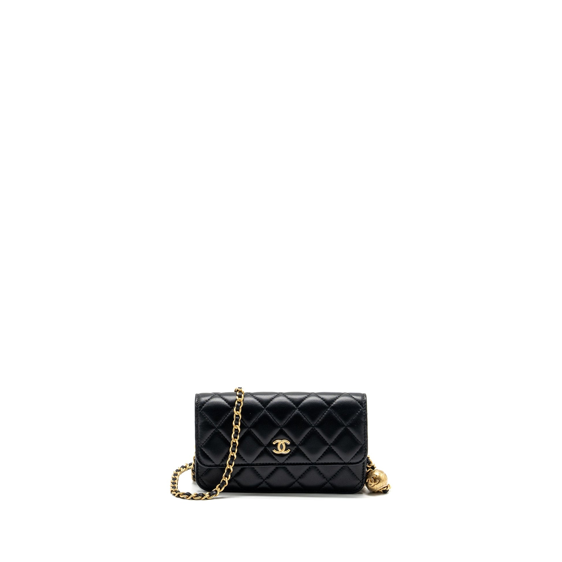 Chanel Pearl Crush mini flap wallet with chain lambskin black GHW (microchip)