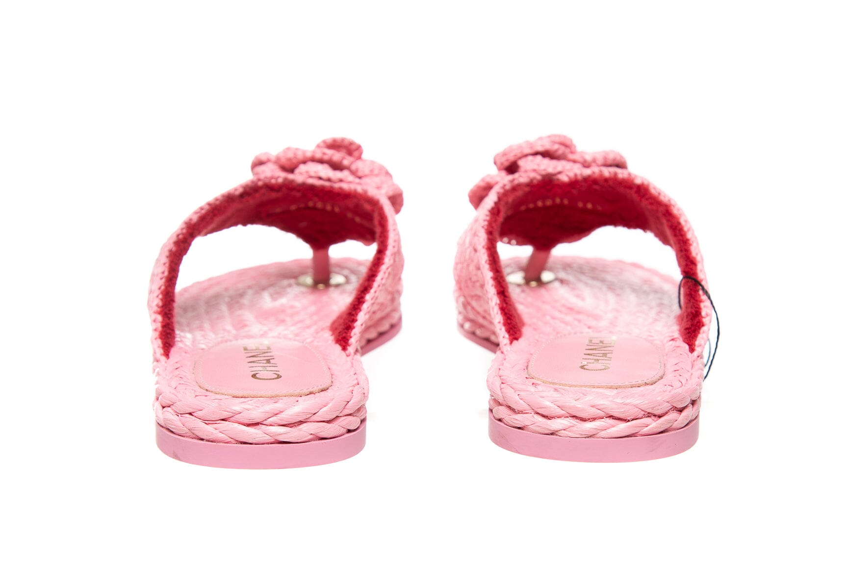 Chanel Pink Woven Camellia Thong Sandals. This item is in very good condition.