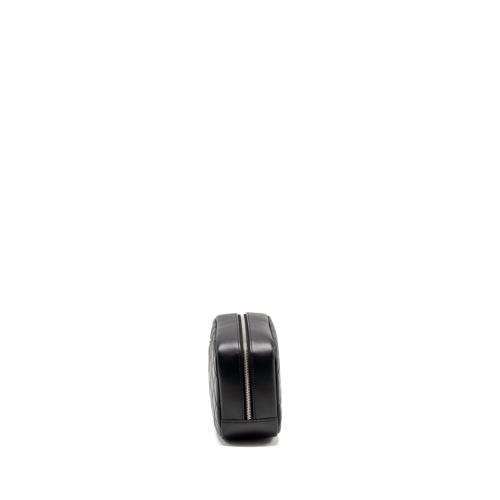 CHANEL Quilted Cosmetic Pouch Lambskin Black SHW