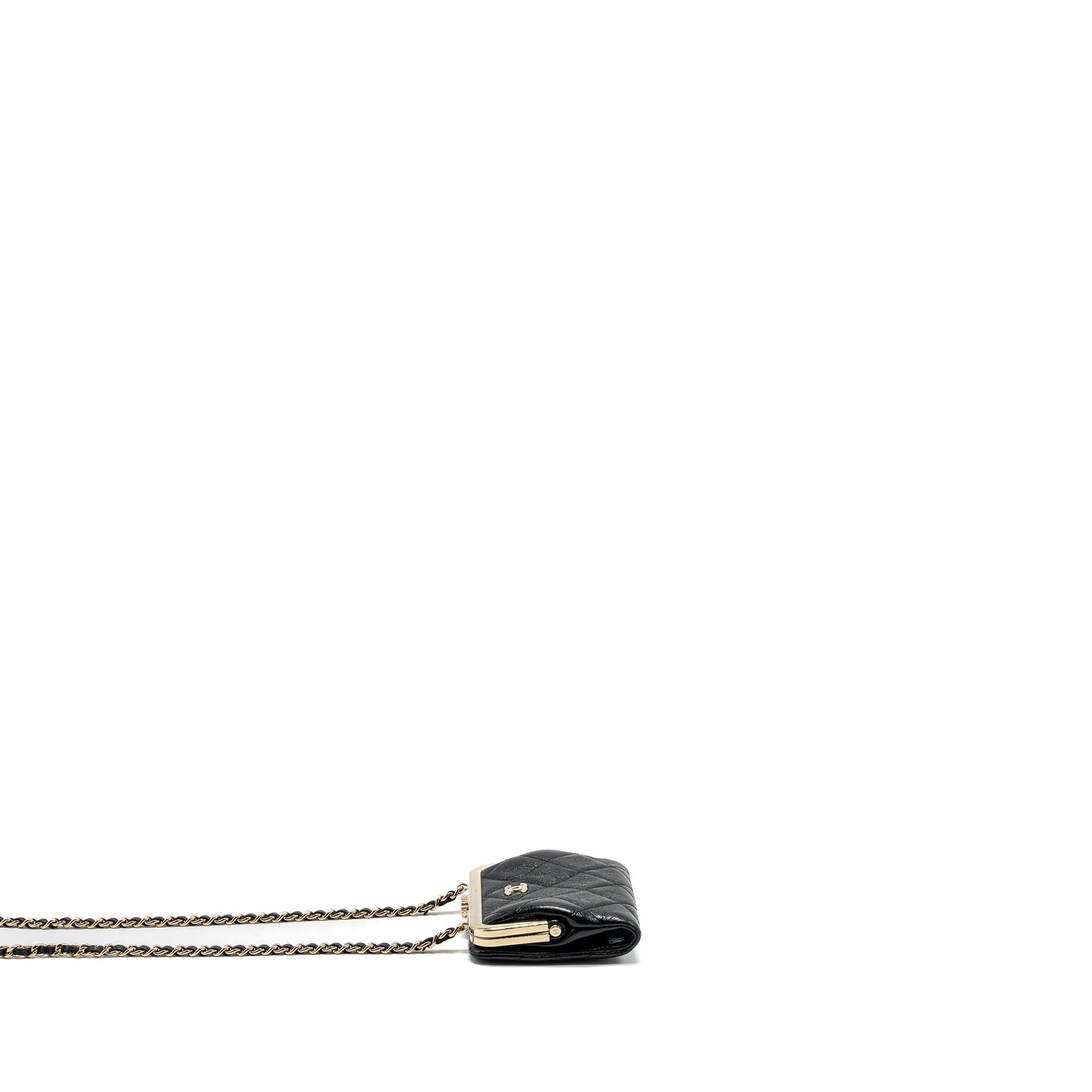 Chanel Quilted Mini Clip Purse With Chain Aged Calfskin Black LGHW (microchip)