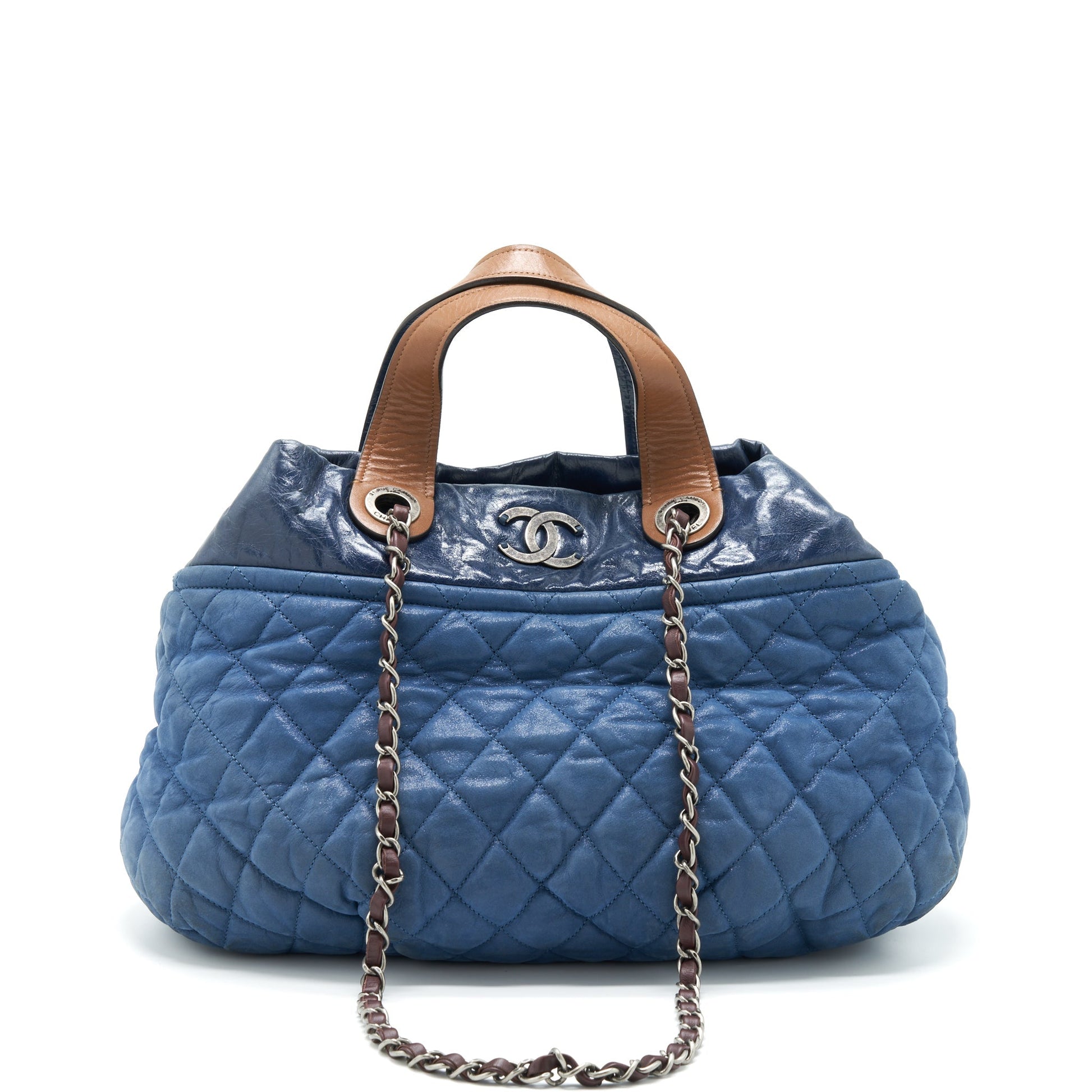 Chanel Quilted Shoulder Bag Blue Ruthenium Hardware