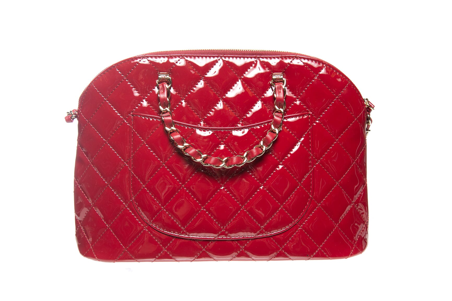 Chanel Red Patent Quilted Small Shopping Handbag