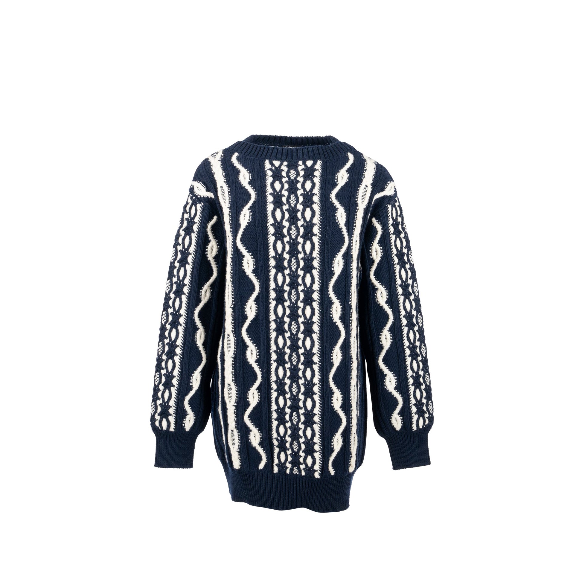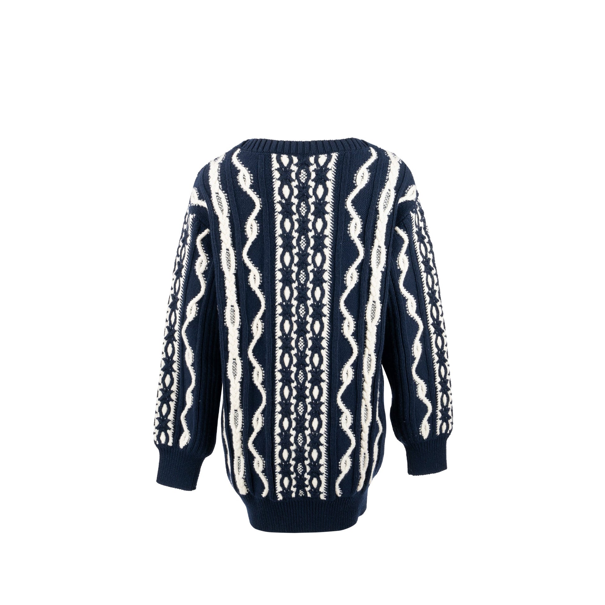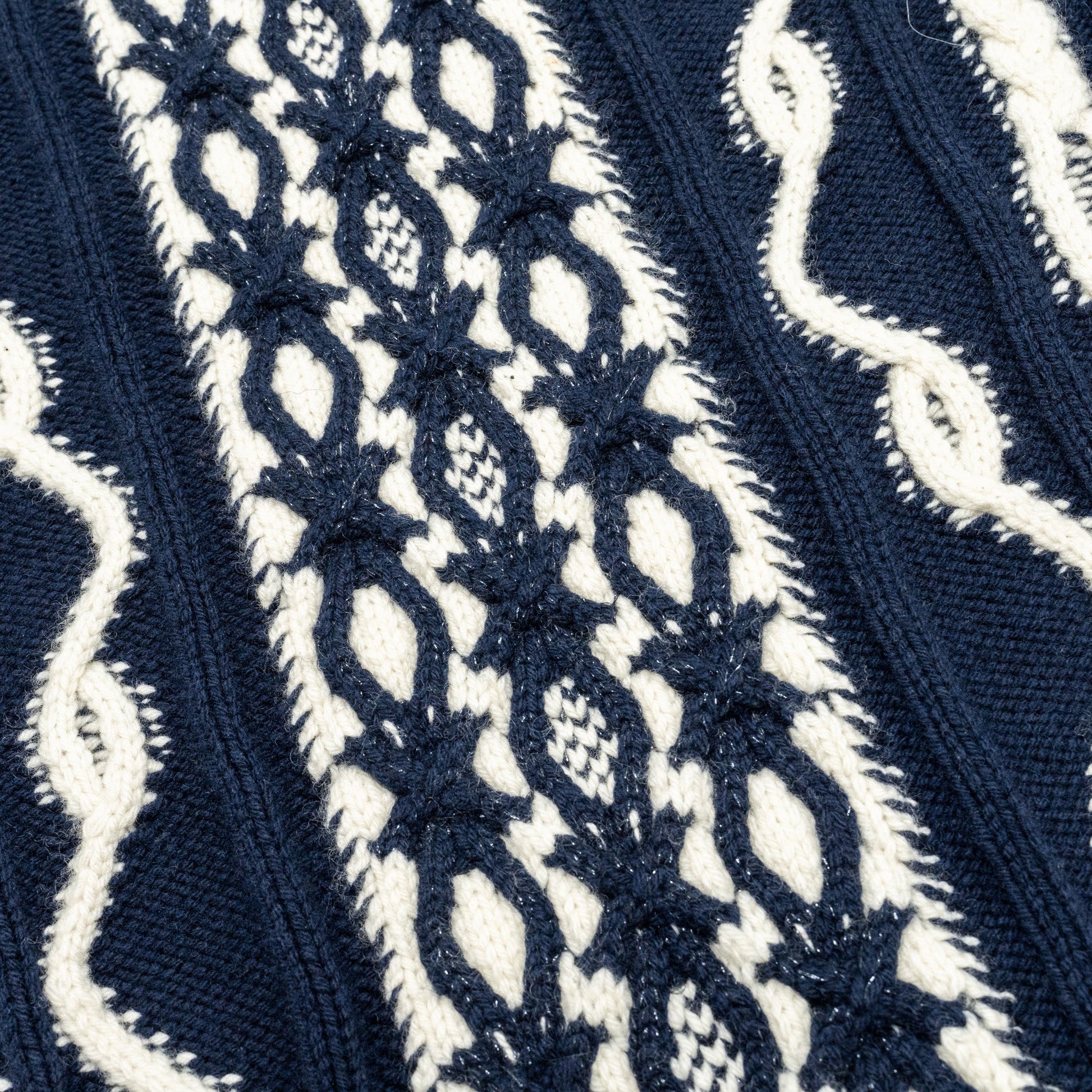 Chanel Size 34 18A Hamburg Chunky Knit Sweater Wool/Cashmere Navy/White