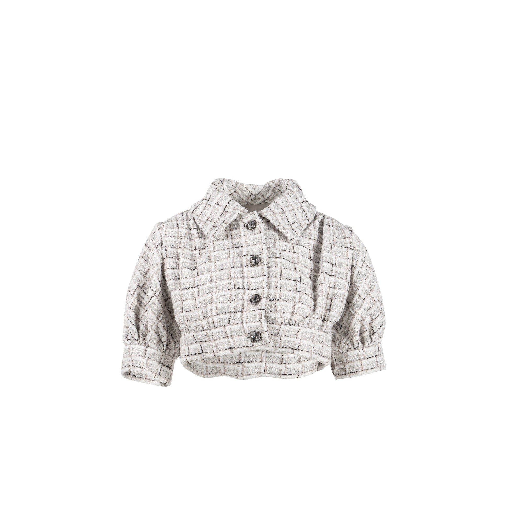 Chanel size 34 22C Tweed Short Jacket Light Grey/White/Black