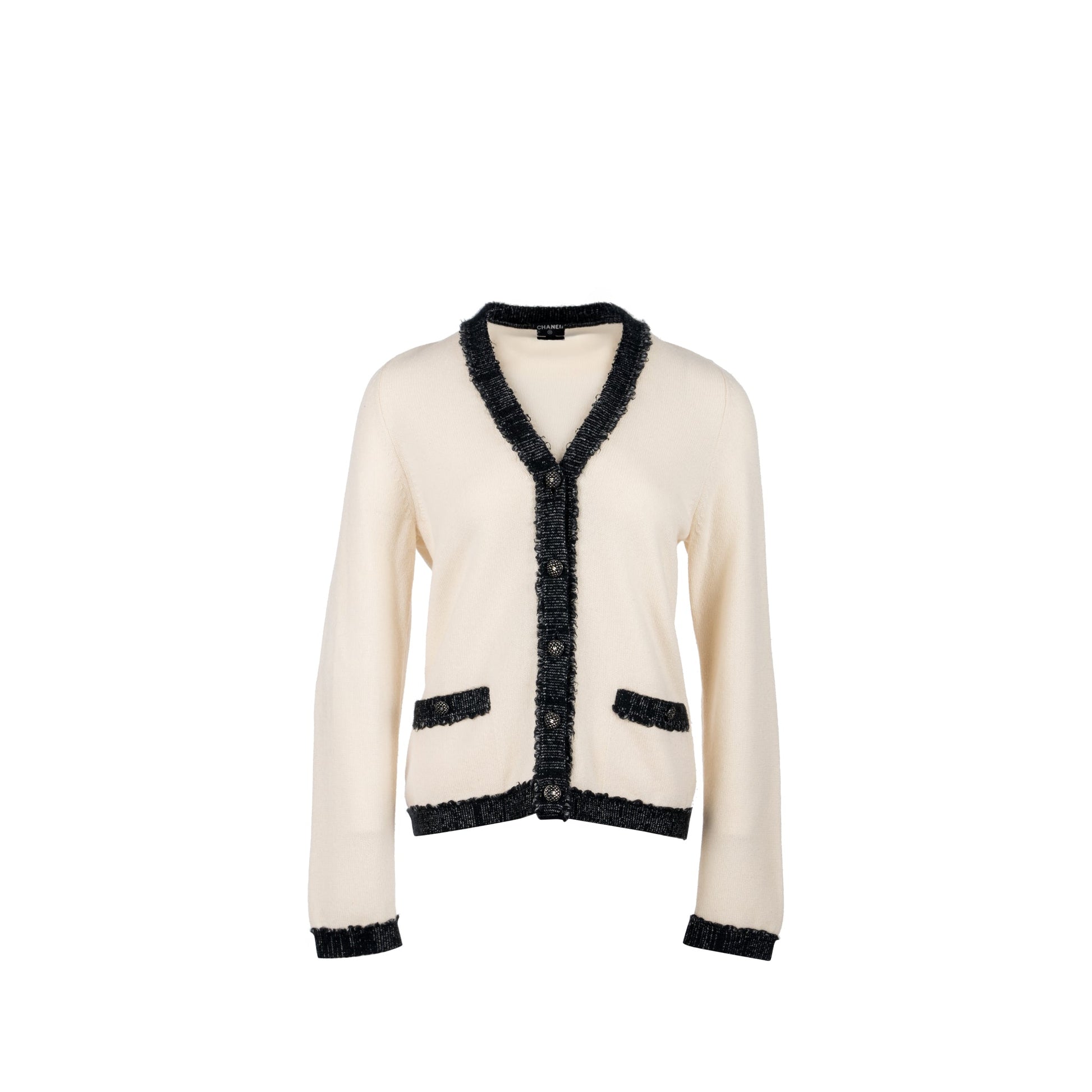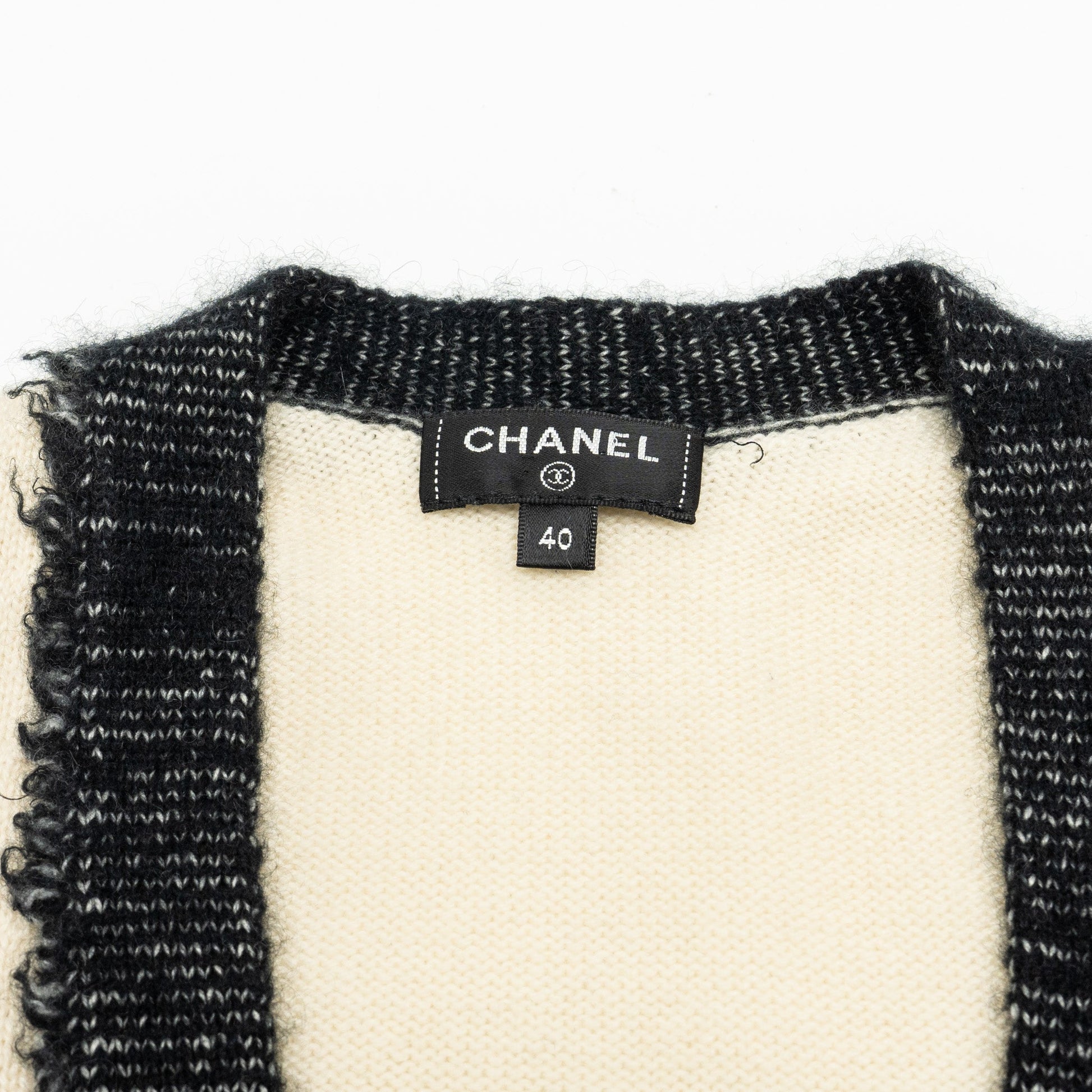 Chanel Size 40 CC Logo Button Cardigan Cashmere White/Black