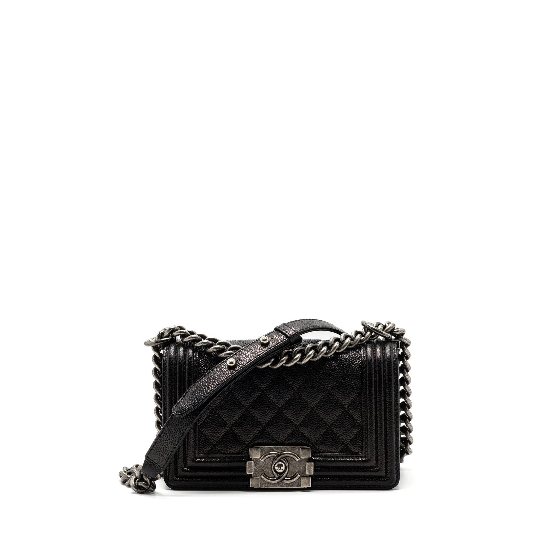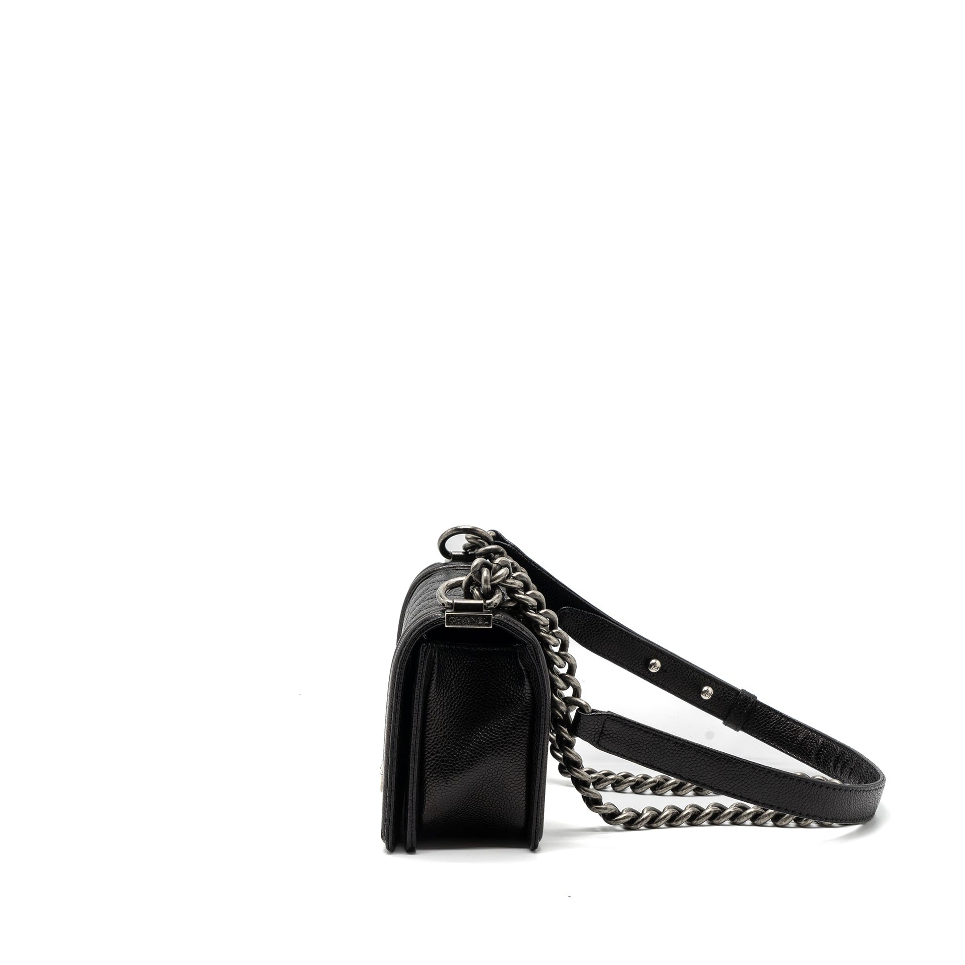 Chanel small boy bag caviar black ruthenium hardware