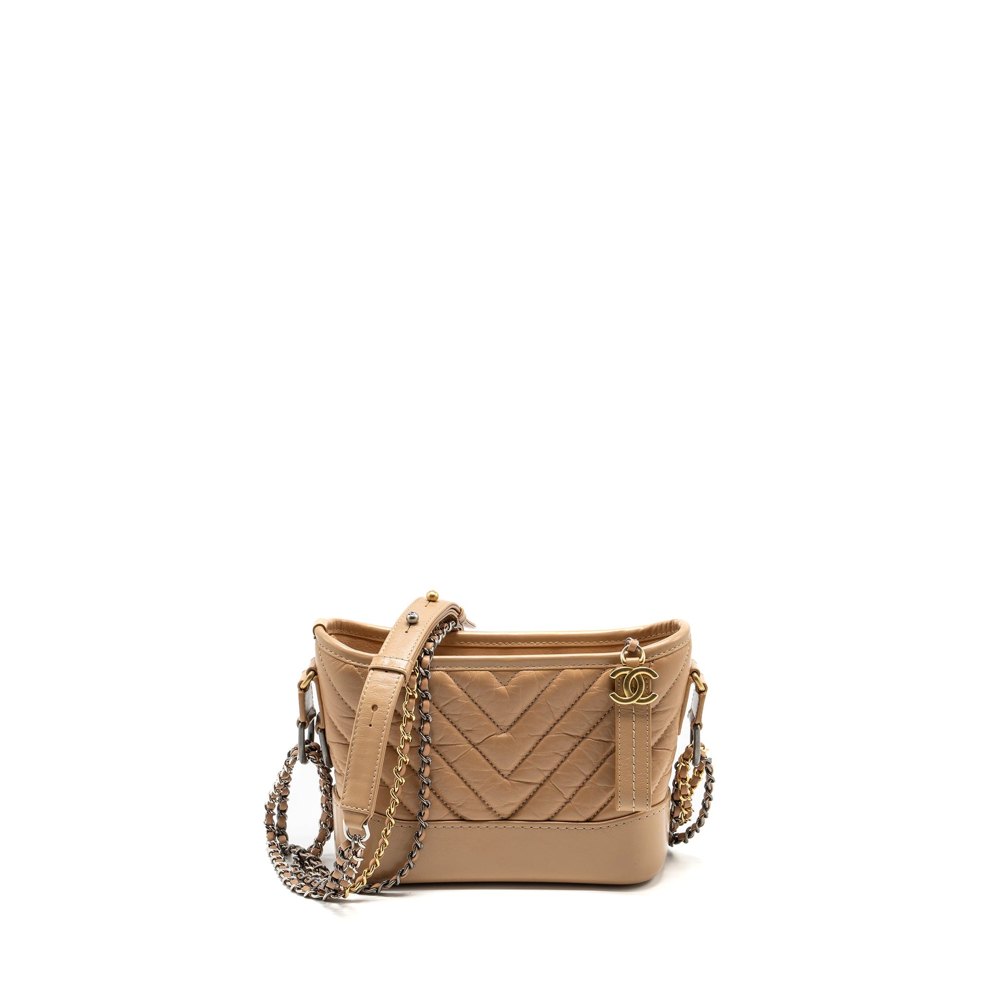 Chanel Small Chevron Gabrielle Hobo Bag calfskin beige multicolour hardware