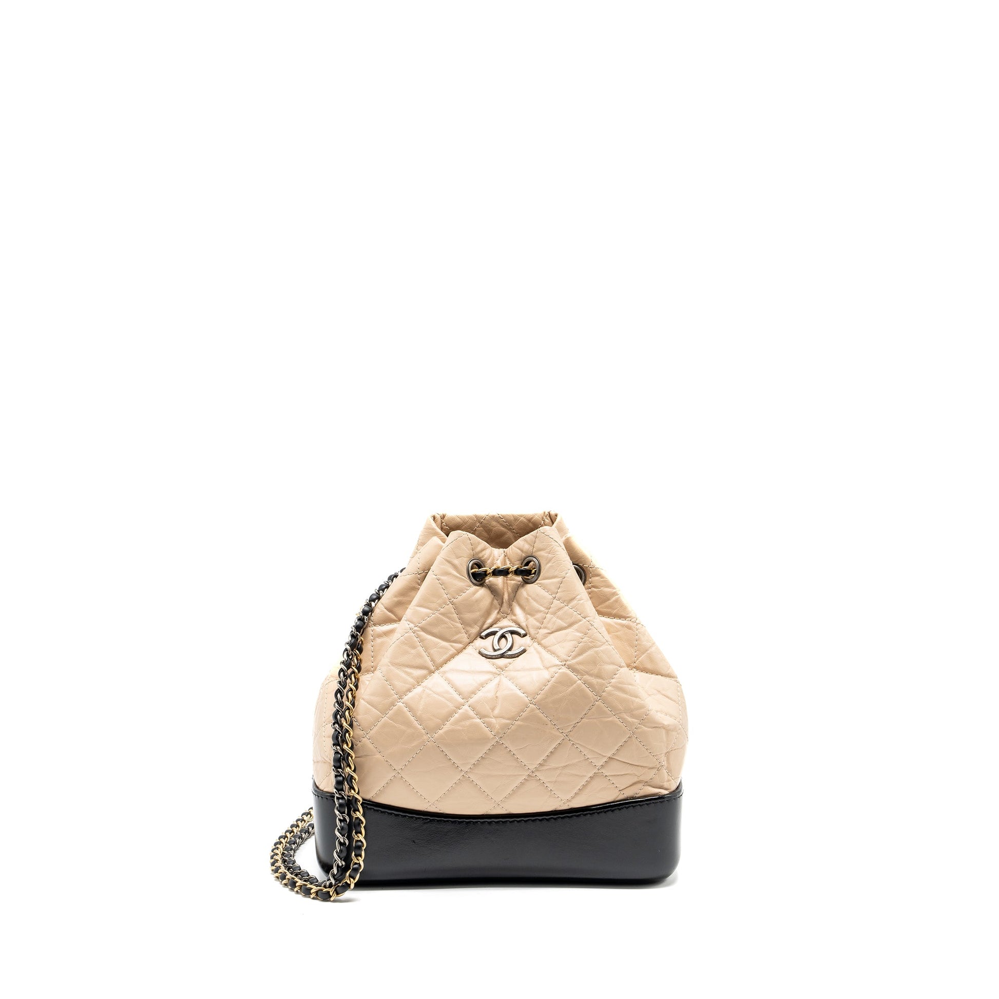 Chanel Small Gabrielle Backpack Aged Calfskin Beige/Black Multicolour Hardware