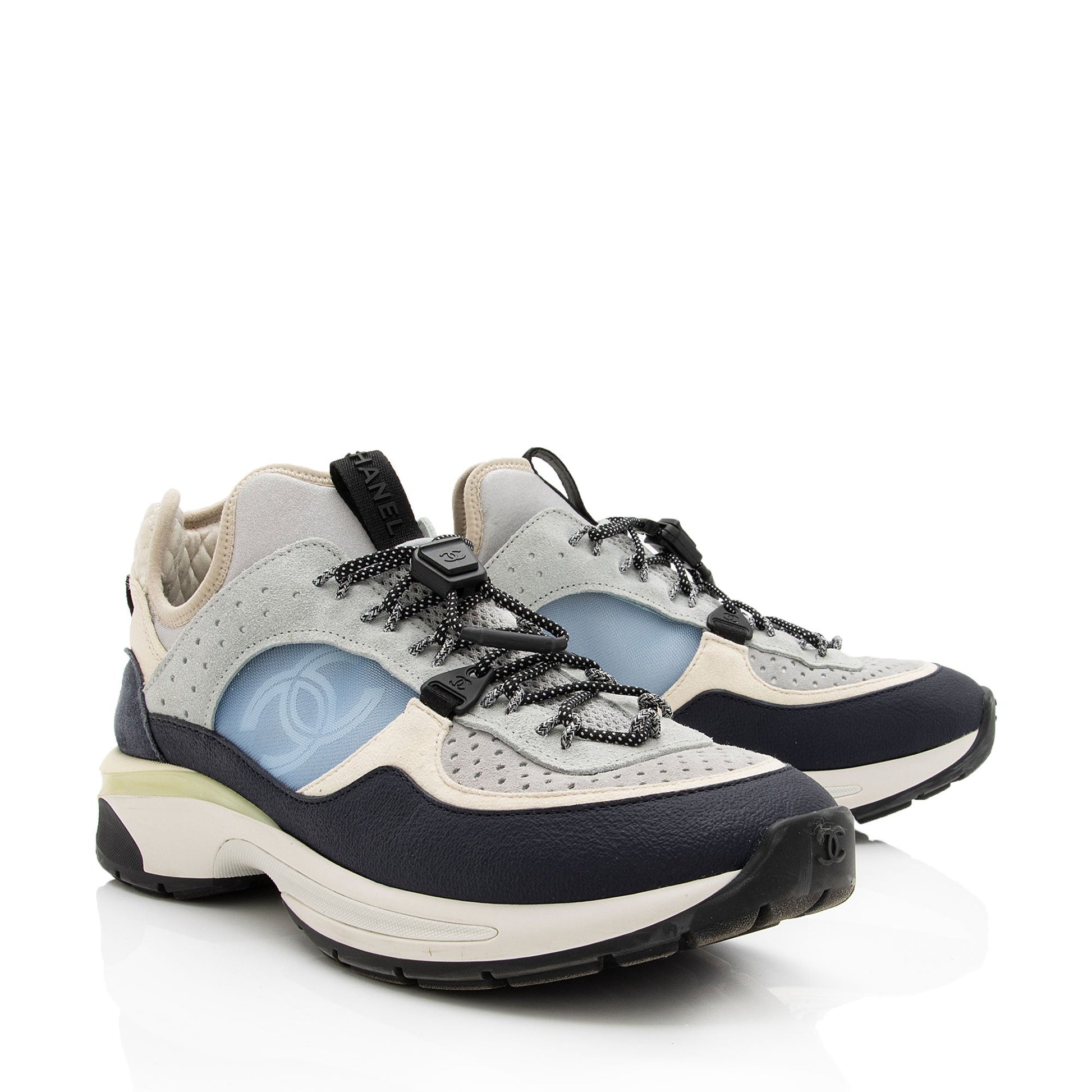 Chanel Suede Calfskin Quilted Fabric CC Sneakers - Size 10 / 40 (SHF-A0Zb1v)