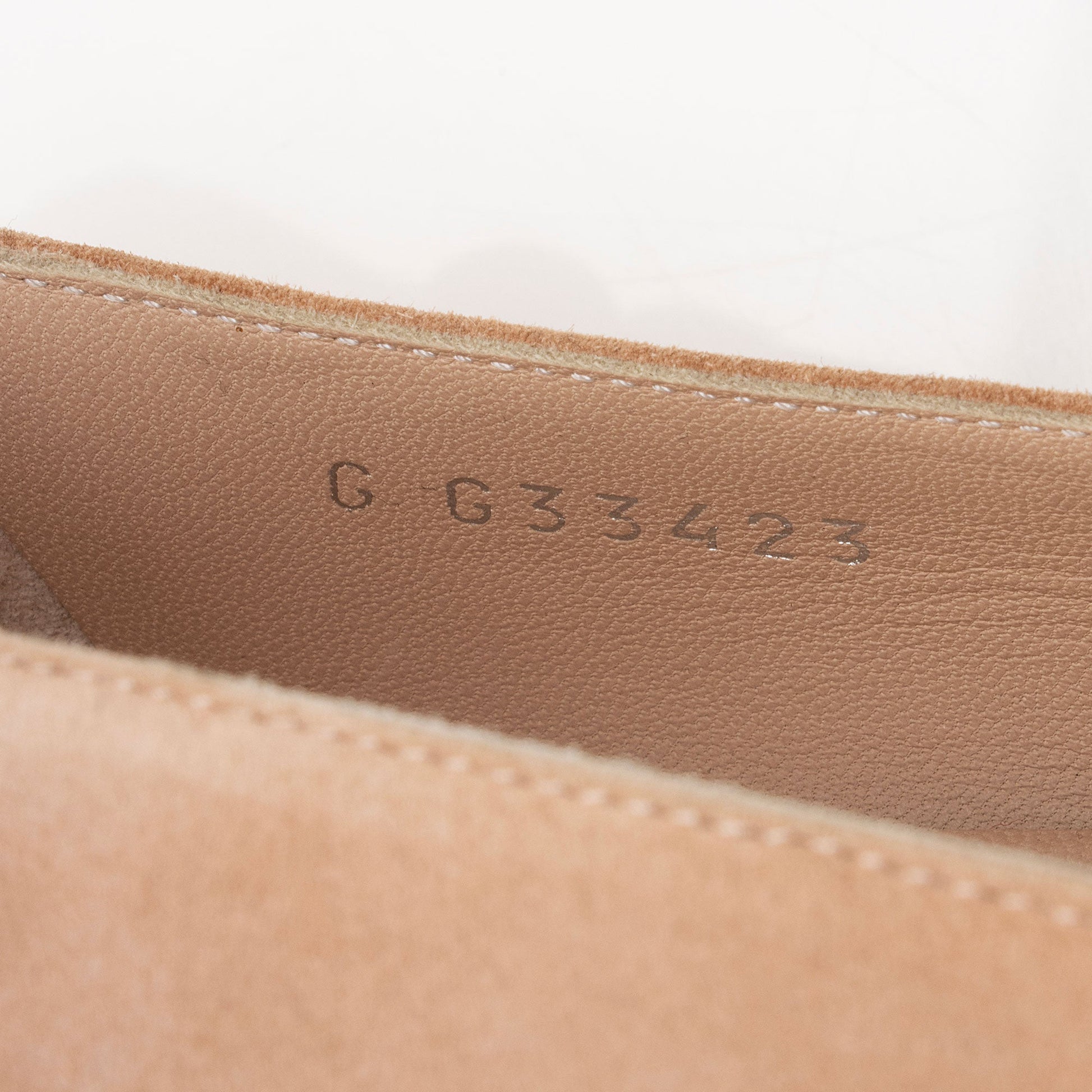 Condition Notes: Marks and light scuffs throughout outsoles. Minor marks and wear throughout insoles. Light scuffs and marks throughout upper suede. Marks to upper edge. Please note: Chanel shoes typically run 1 to 1 1/2 sizes smaller. All sizing is dependent of shoe style.