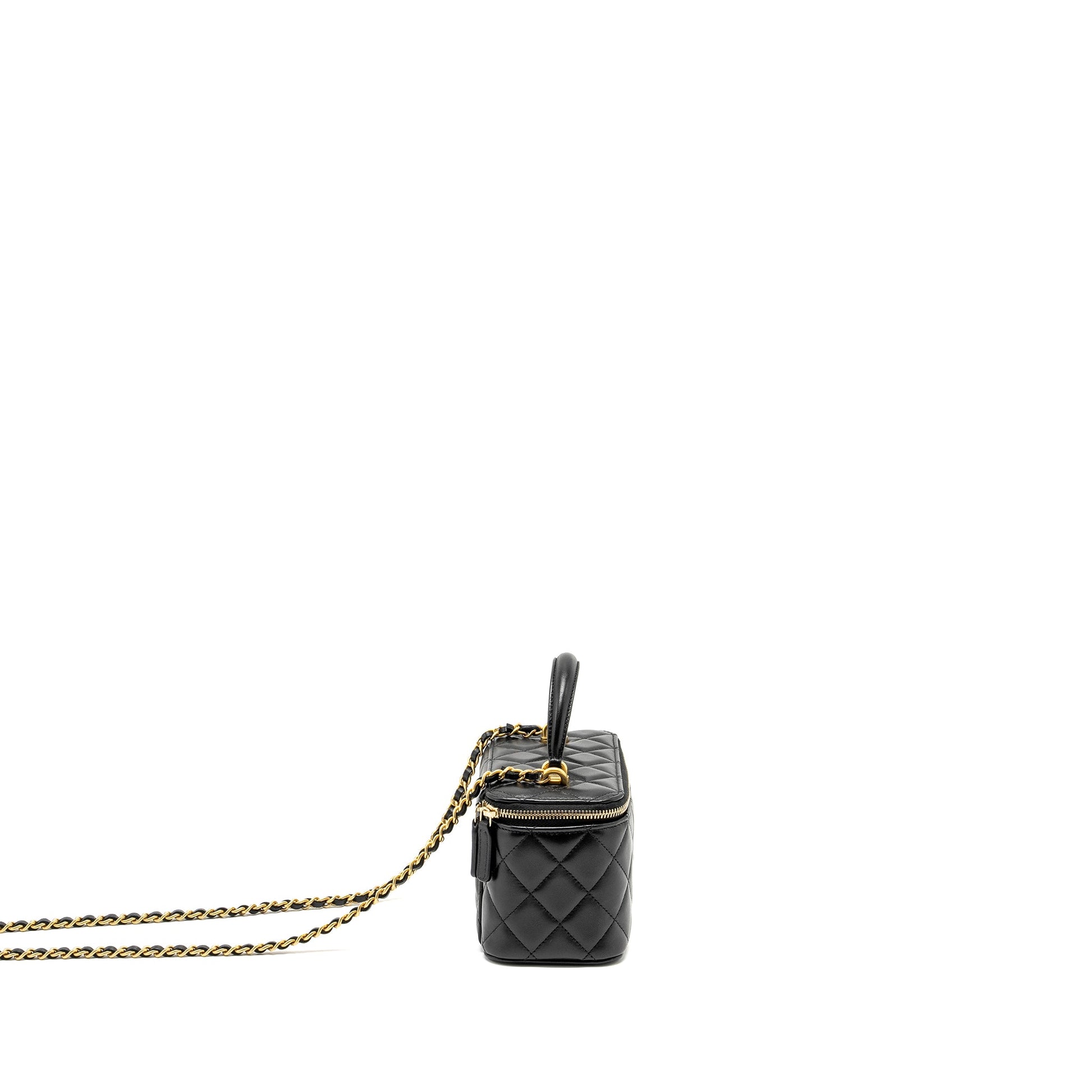 CHANEL Top Handle Long Vanity With Chain Lambskin Black GHW