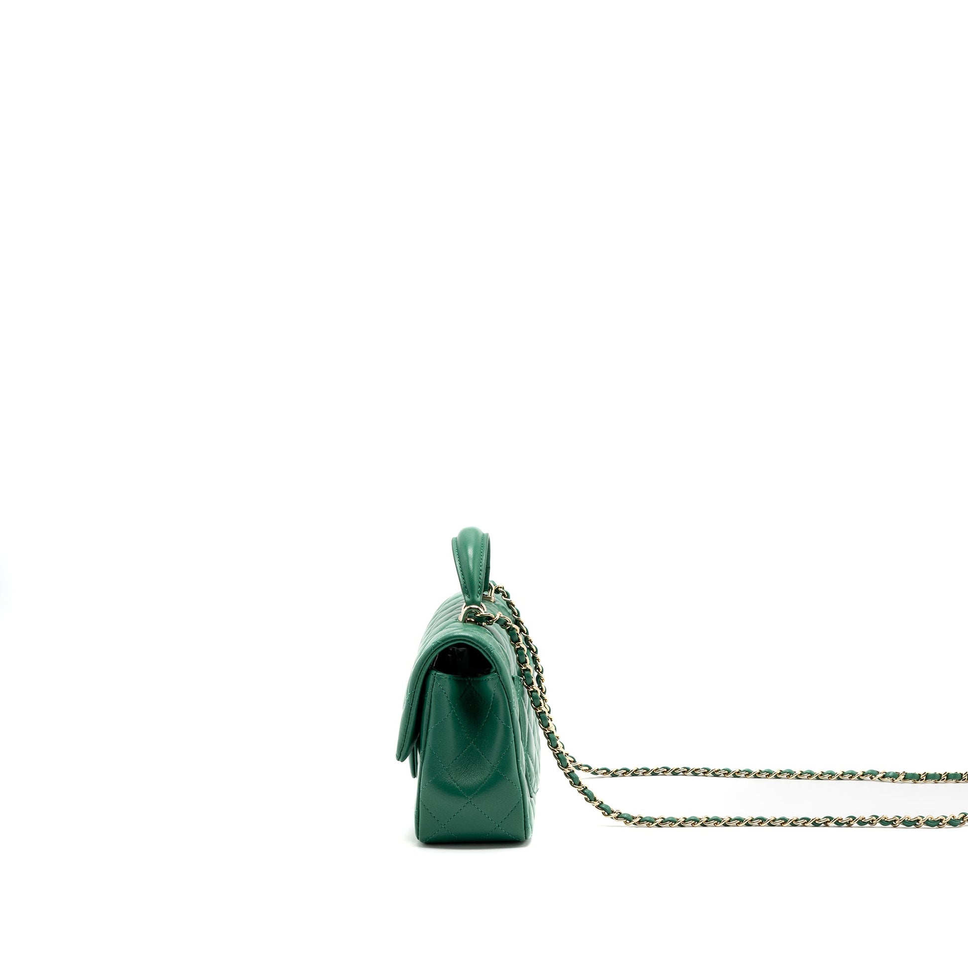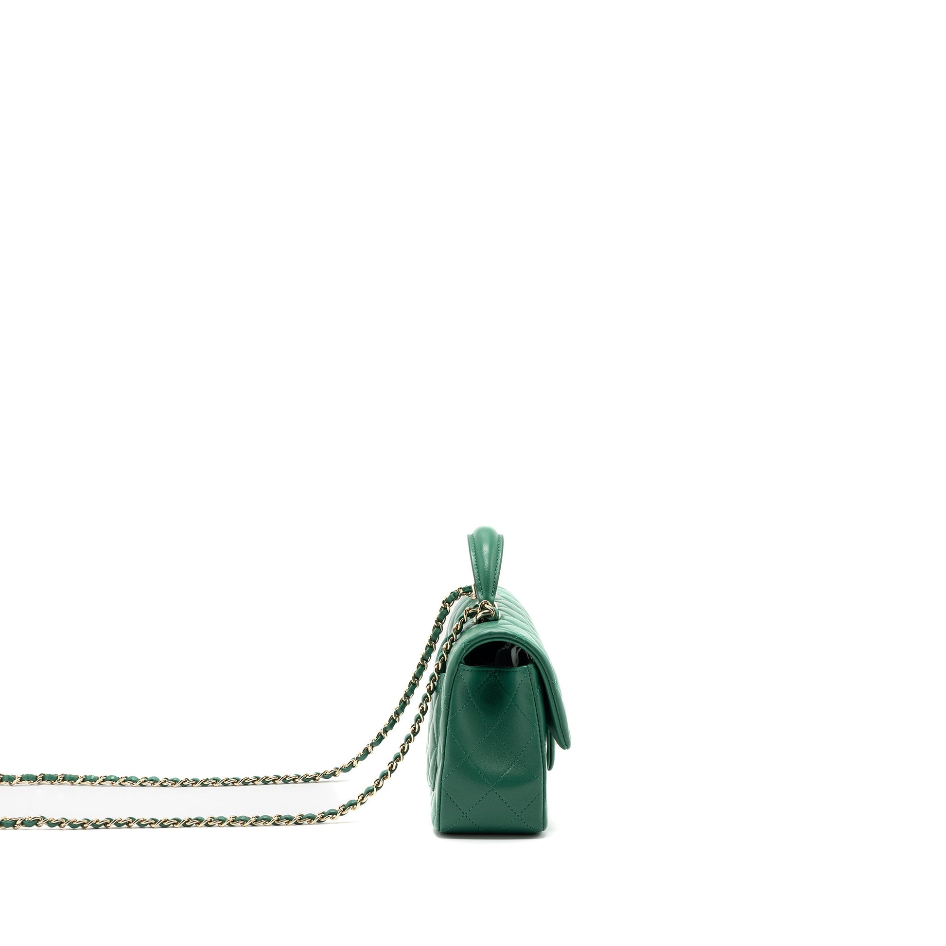 Chanel Top Handle Mini Flap Bag with Chain Lambskin Green LGHW (Microchip)