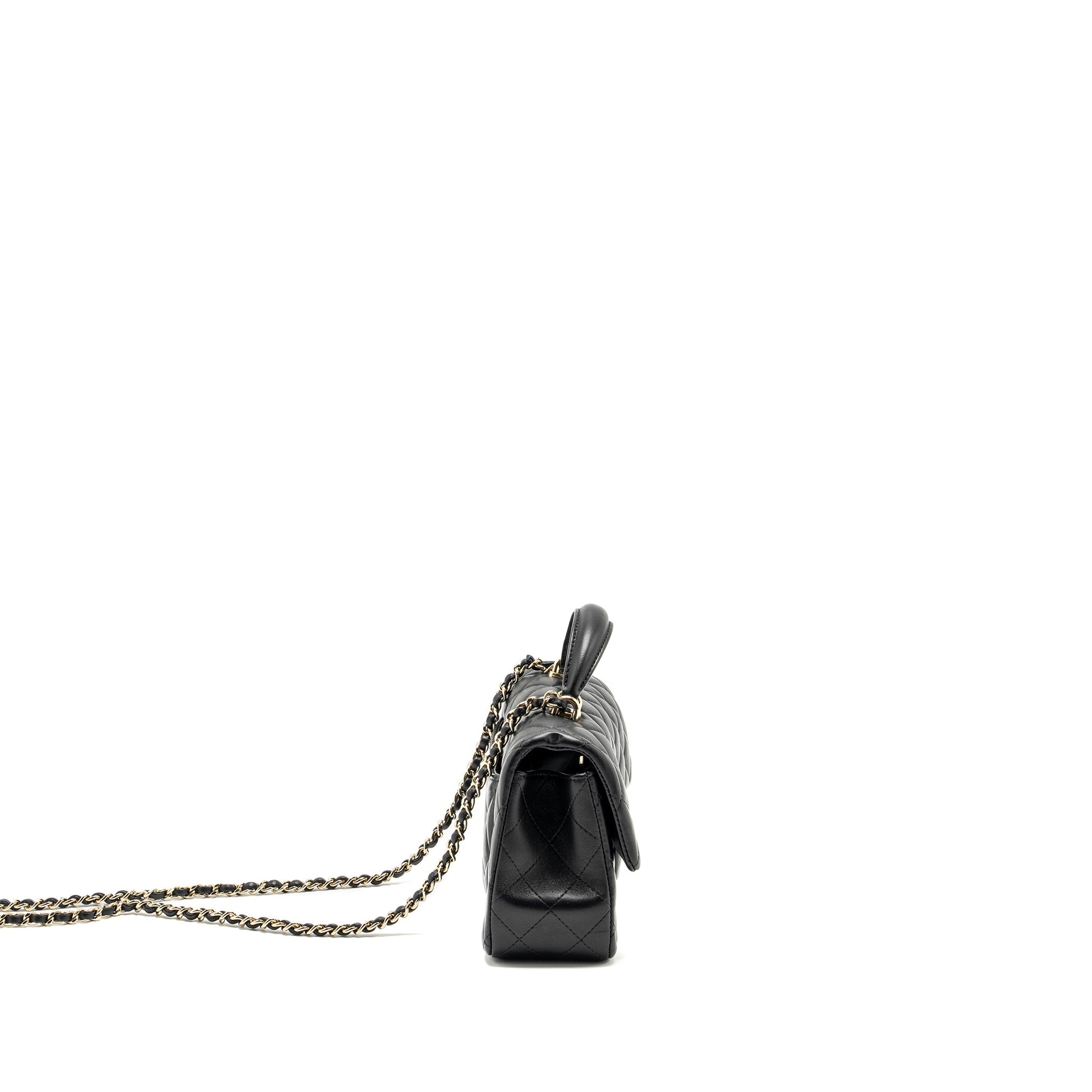 CHANEL Top Handle Mini Rectangular Flap Bag Lambskin Black LGHW (microchip)