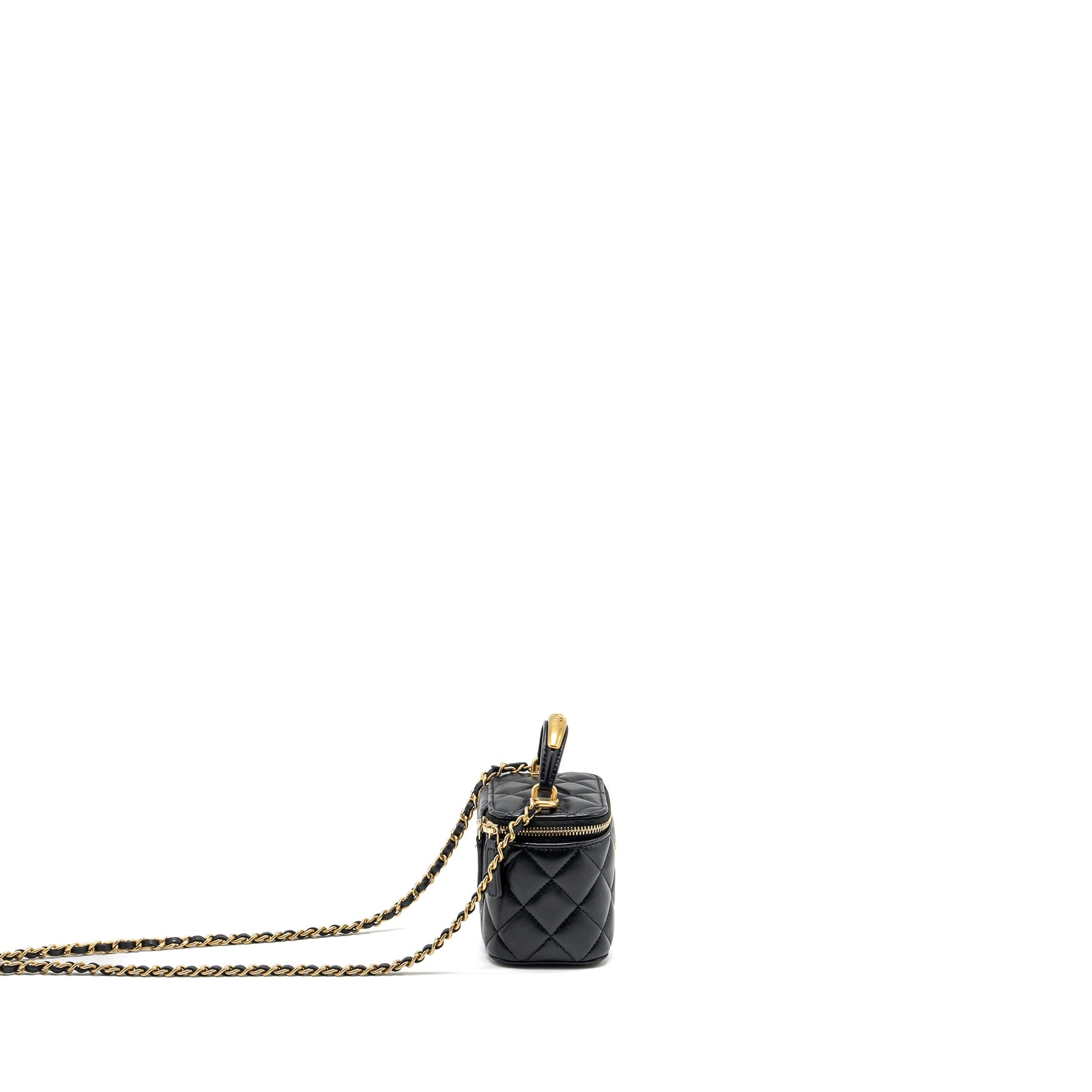 Chanel Top Handle Mini Vanity Case with Chain Lambskin Black GHW (Microchip)