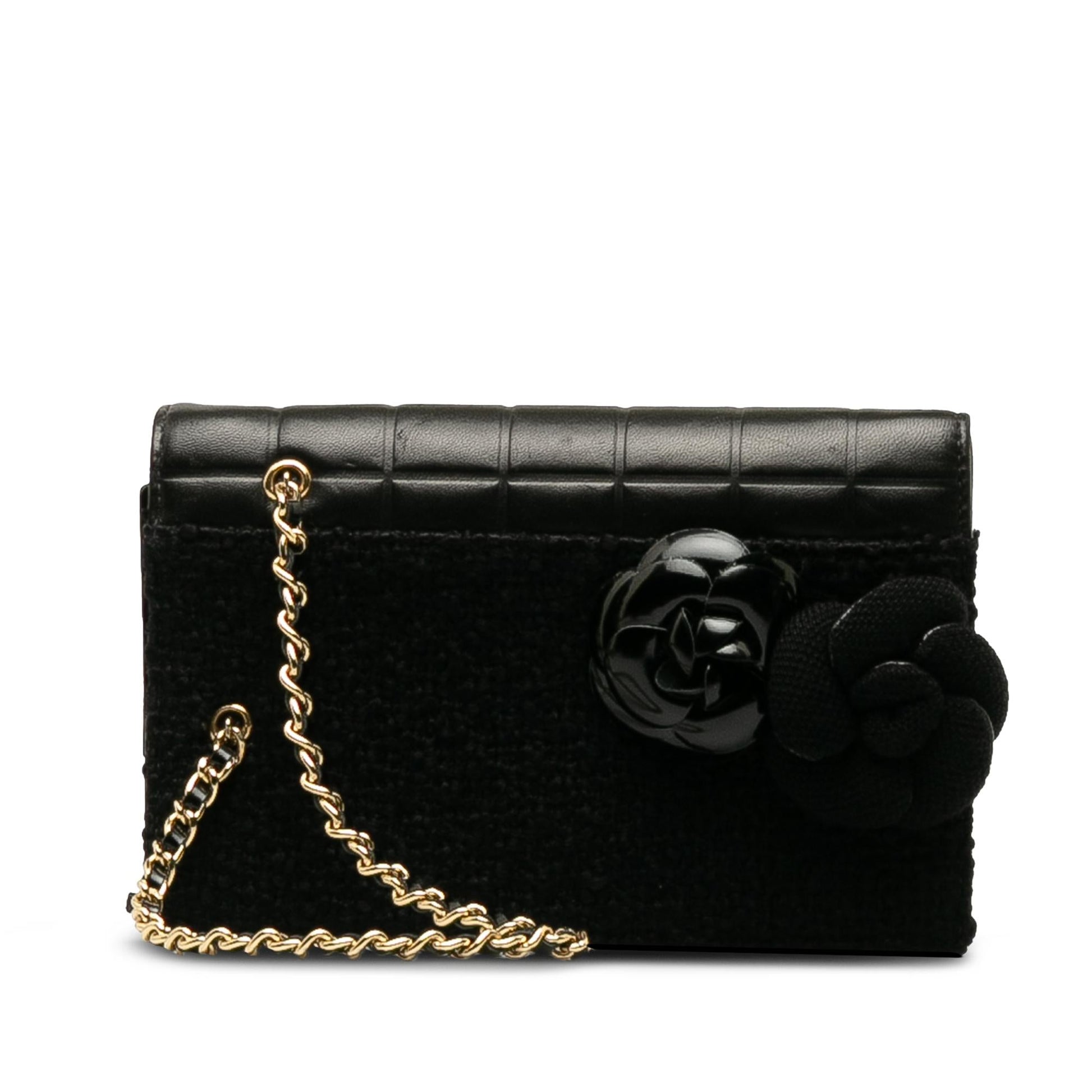 Chanel Tweed Chocolate Bar Camellia Clutch (SHG-6UFZfw)