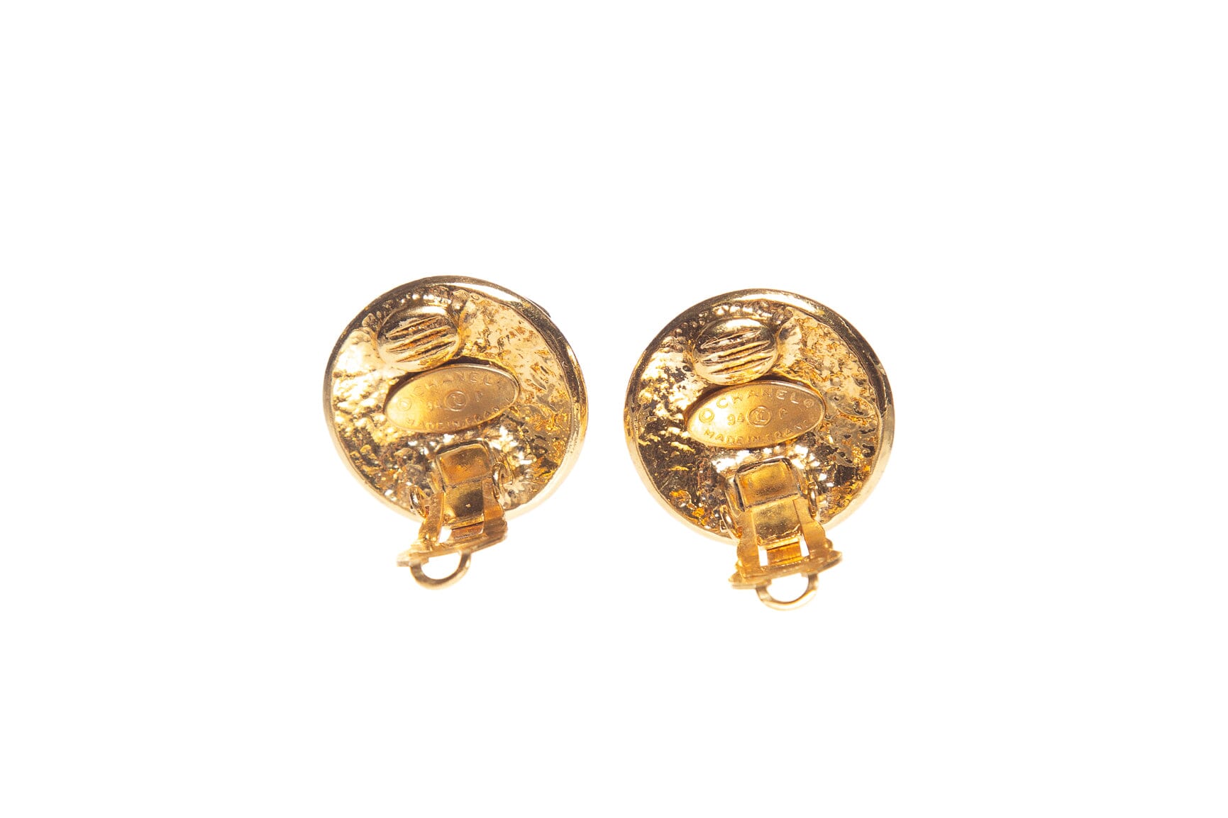 Chanel Vintage 1994 Spring Round CC Gold Clip-On Earrings