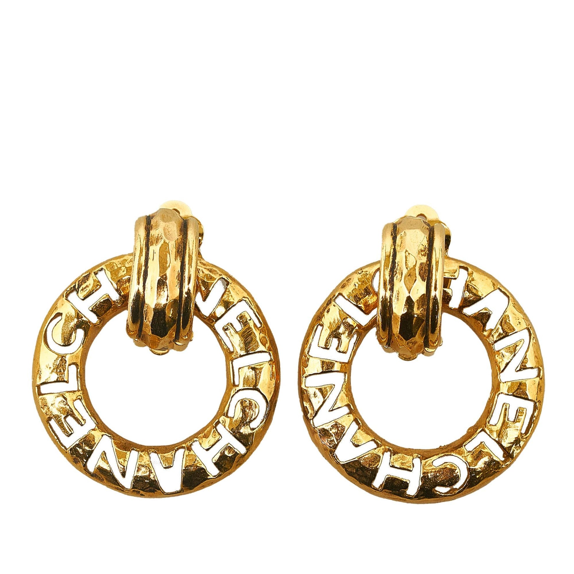 Chanel Vintage Cut-Out Logo Ring Drop Clip-On Earrings (SHG-nzLEEC)