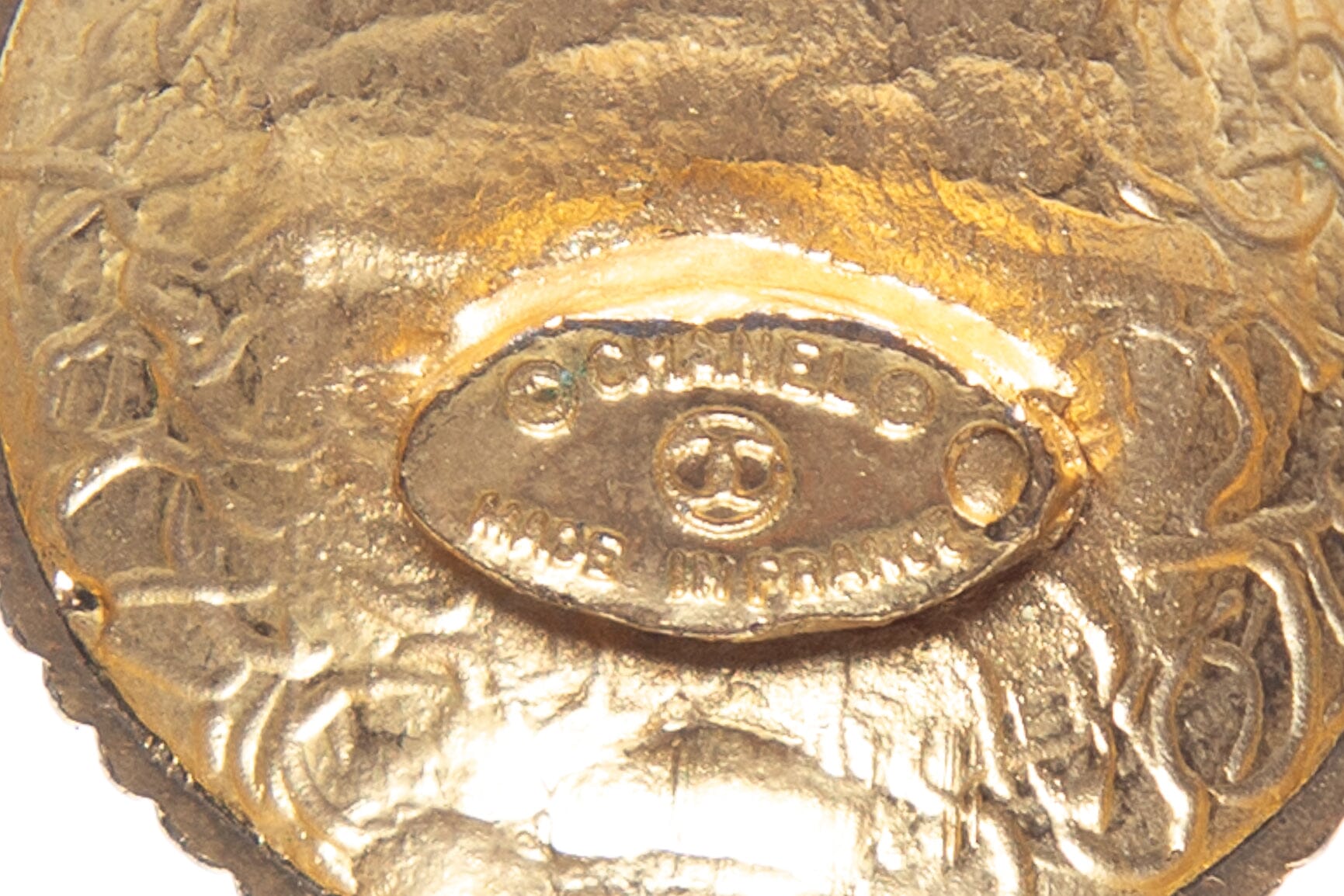 Chanel Vintage Gold Logo Coco Engraved Earrings