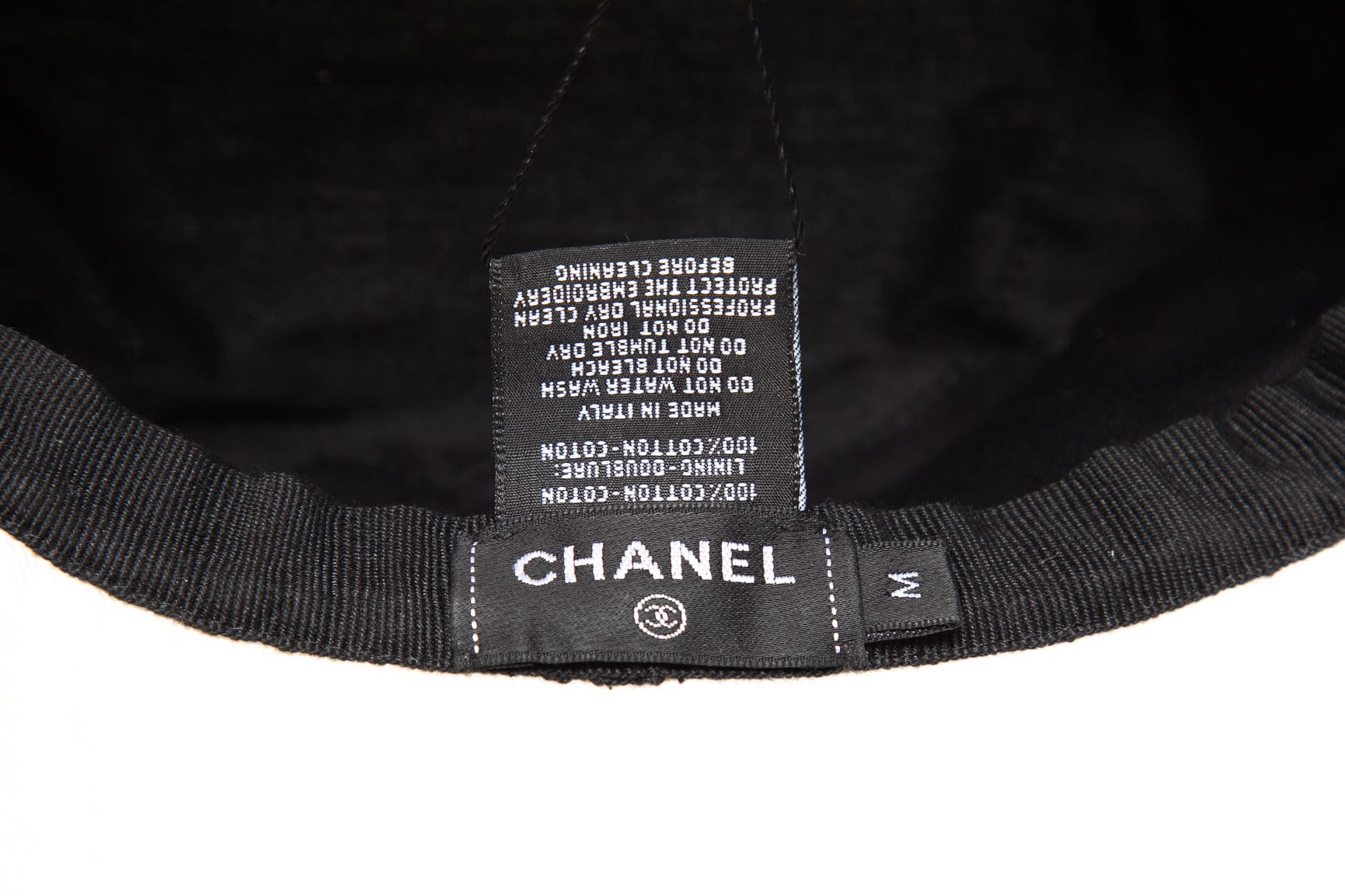 Chanel White M Embroidered "Chanel" Bucket Hat. This item is in very good condition.