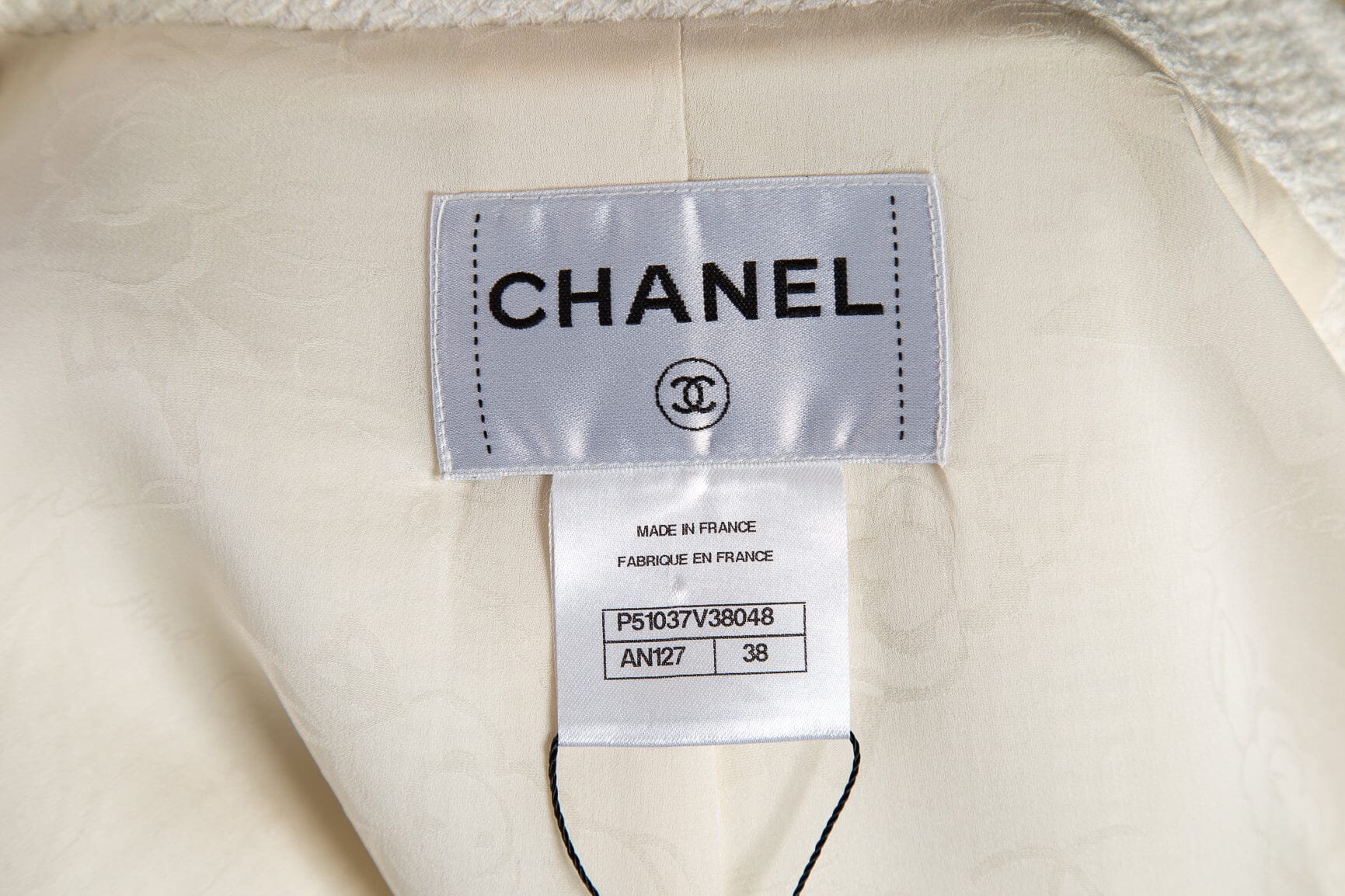 Chanel White Tweed Jacket and Skirt Set SZ 38