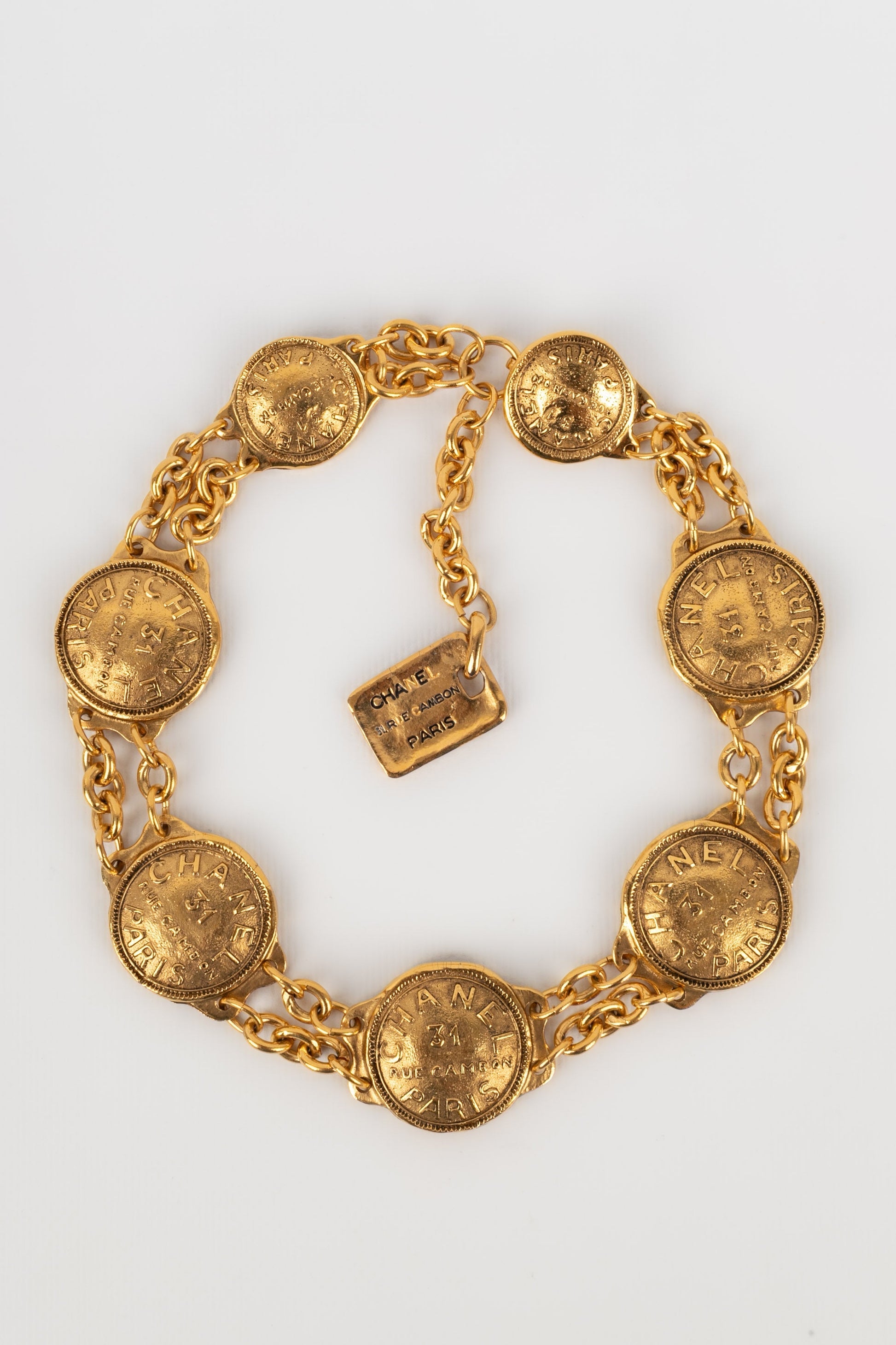 CHANEL - (Made in France) Collier court en métal doré et médailles rondes "rue Cambon" datant des années 1980.