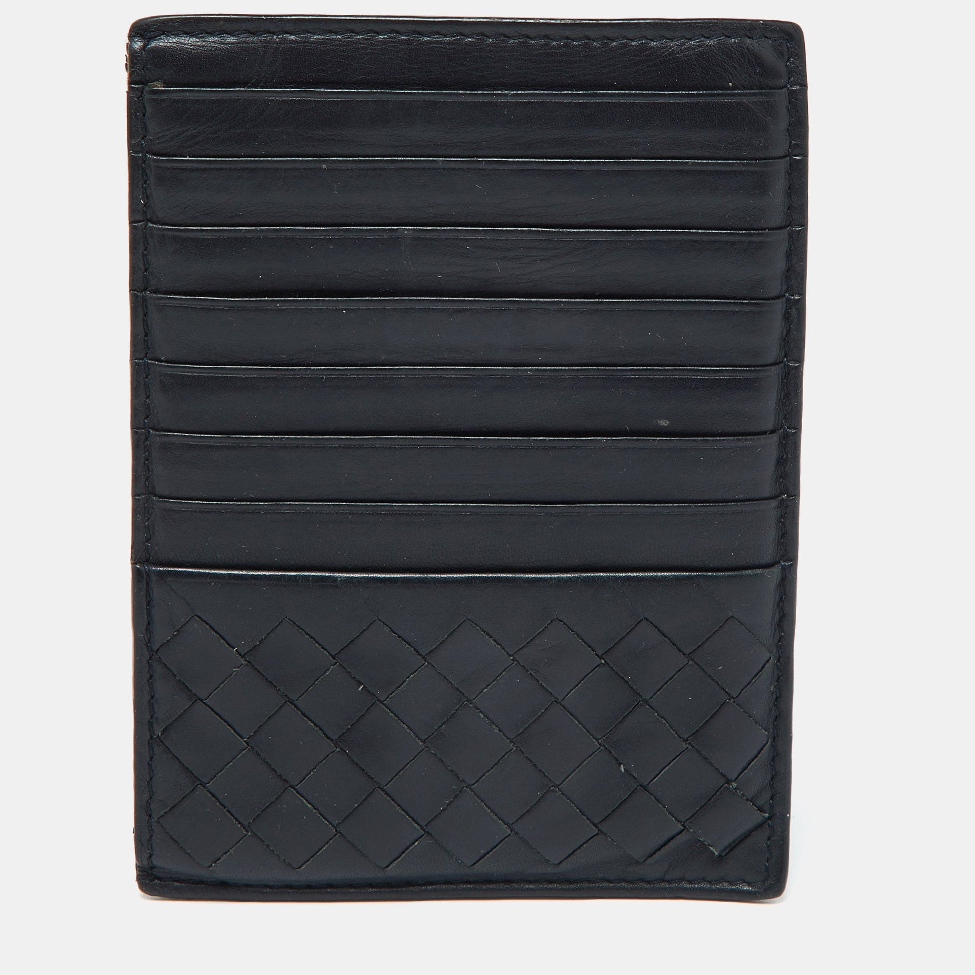Bottega Veneta Dark Blue Intrecciato Leather Zip Card Holder
