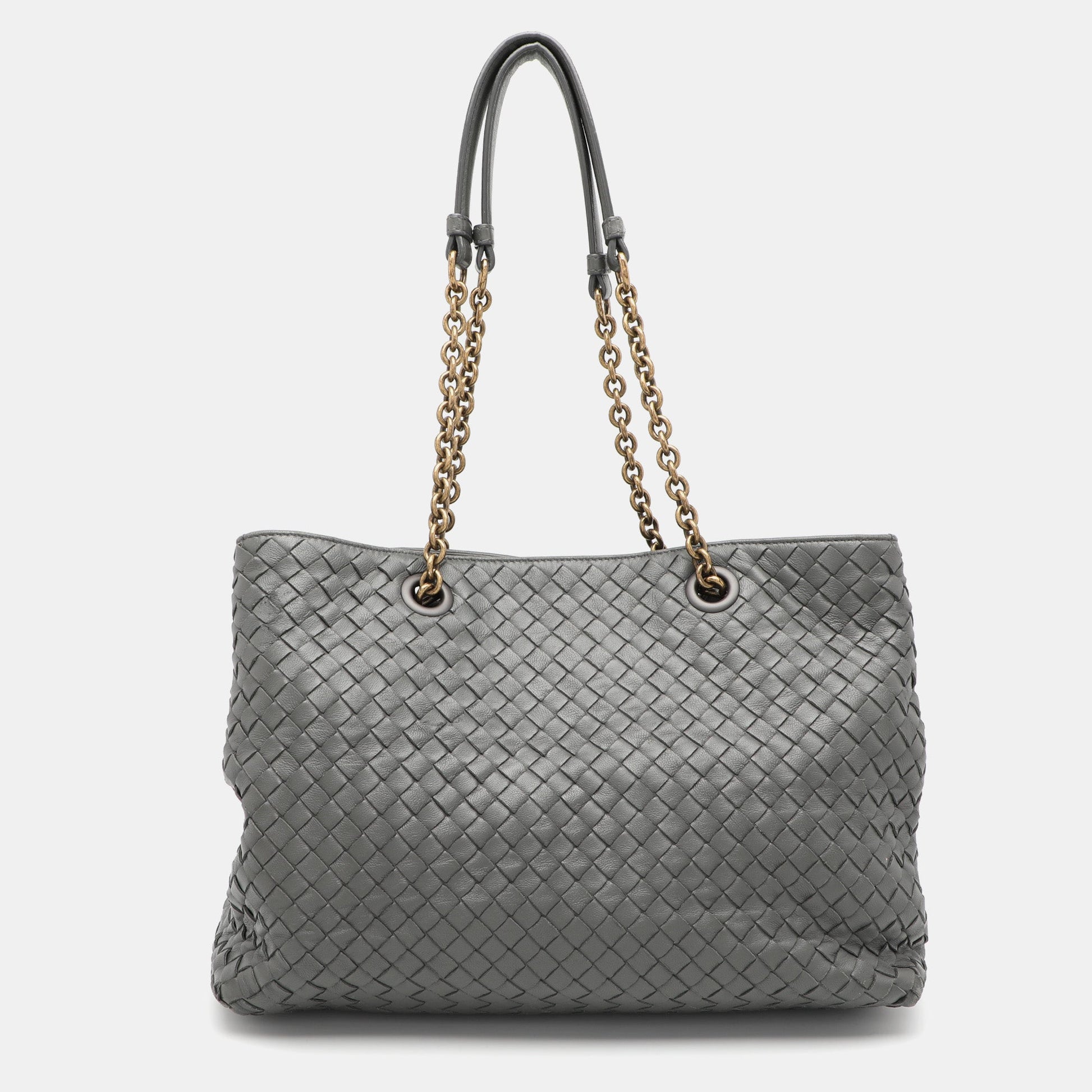 Bottega Veneta Grey Intrecciato Leather Chain Tote