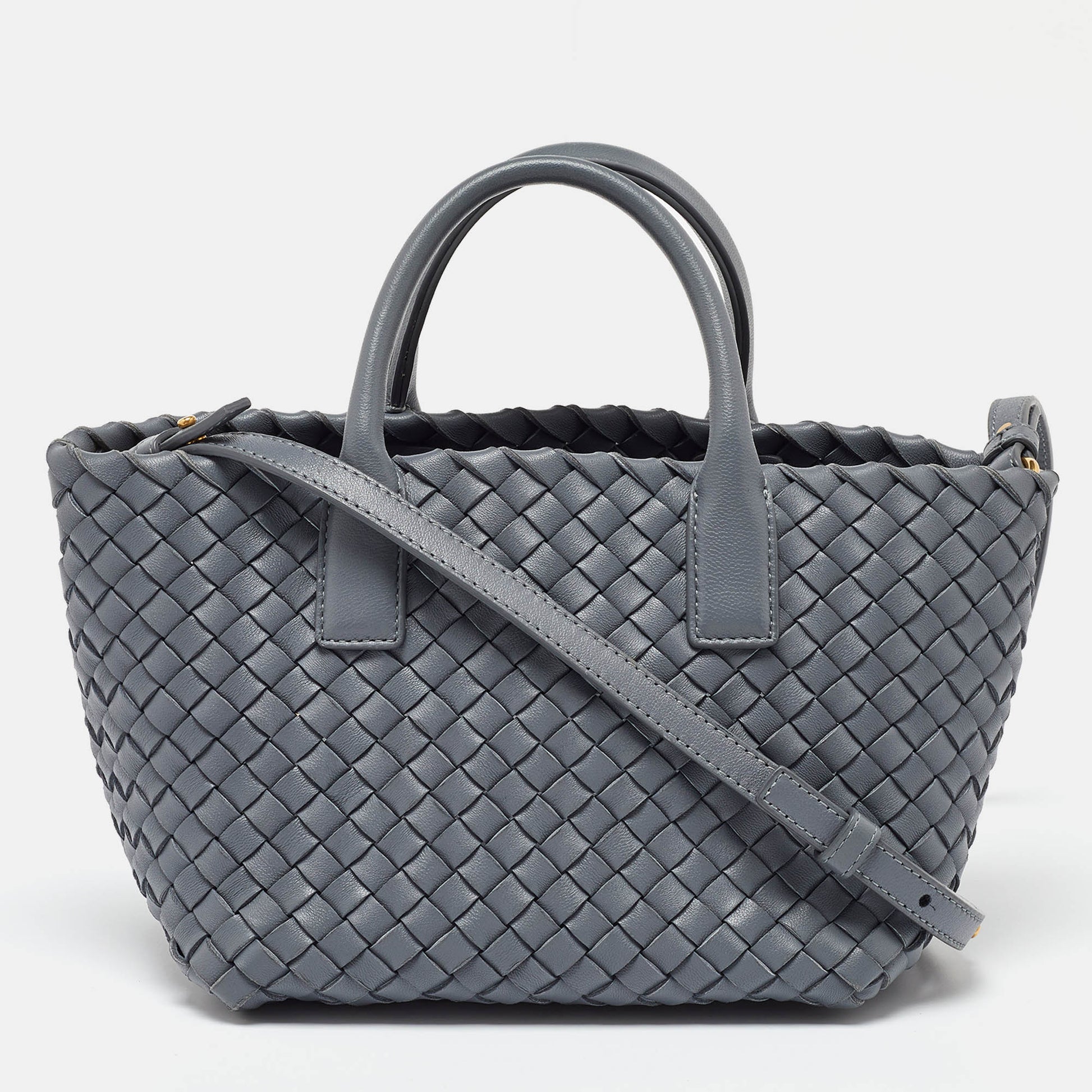 Bottega Veneta Grey Intrecciato Leather Mini Cabat Tote