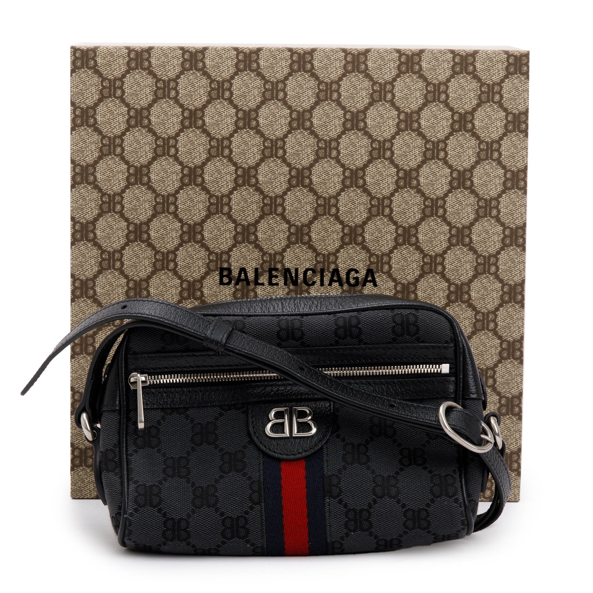 Gucci X Balenciaga The Hacker Project Black BB Canvas Web Mini Camera Bag w/ Box