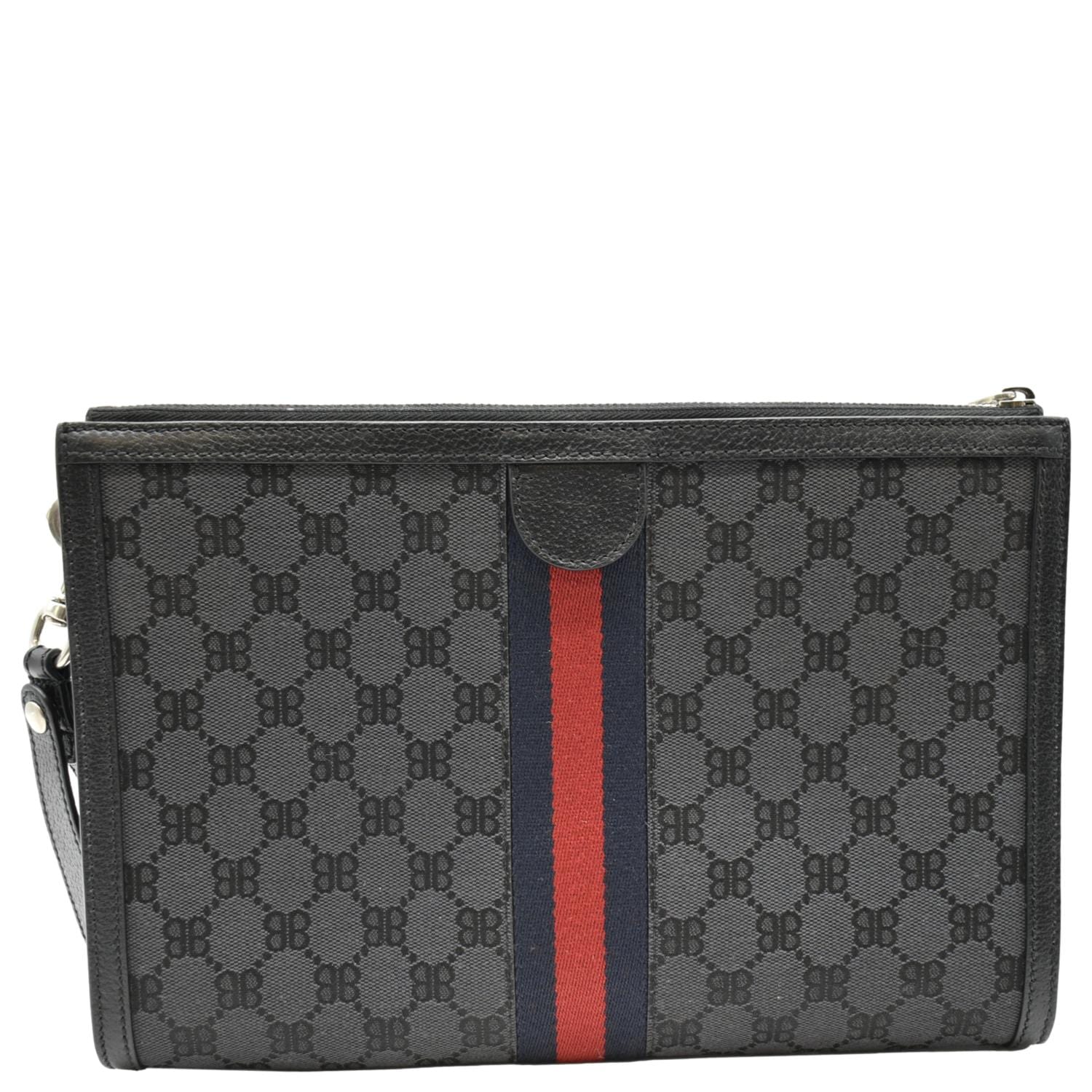 BALENCIAGA X Gucci Hacker Project Web BB Canvas Wristlet Clutch Black 680382