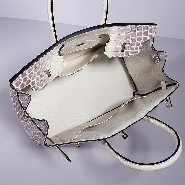 Hermes Birkin 35cm Crocodile Leather Handbag Grey White Gold